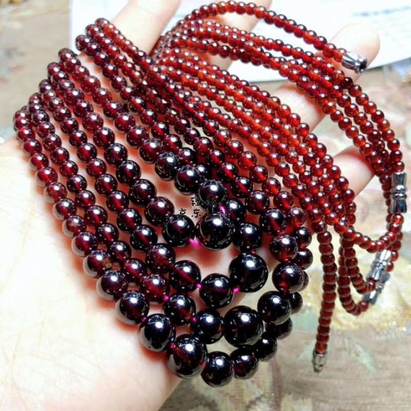 Cute natural pigeon blood red garnet necklace tower chain family portrait 4-9mm