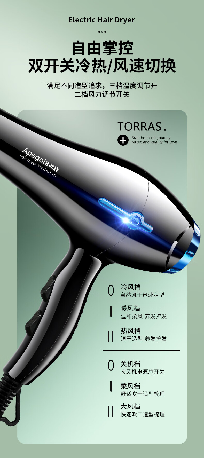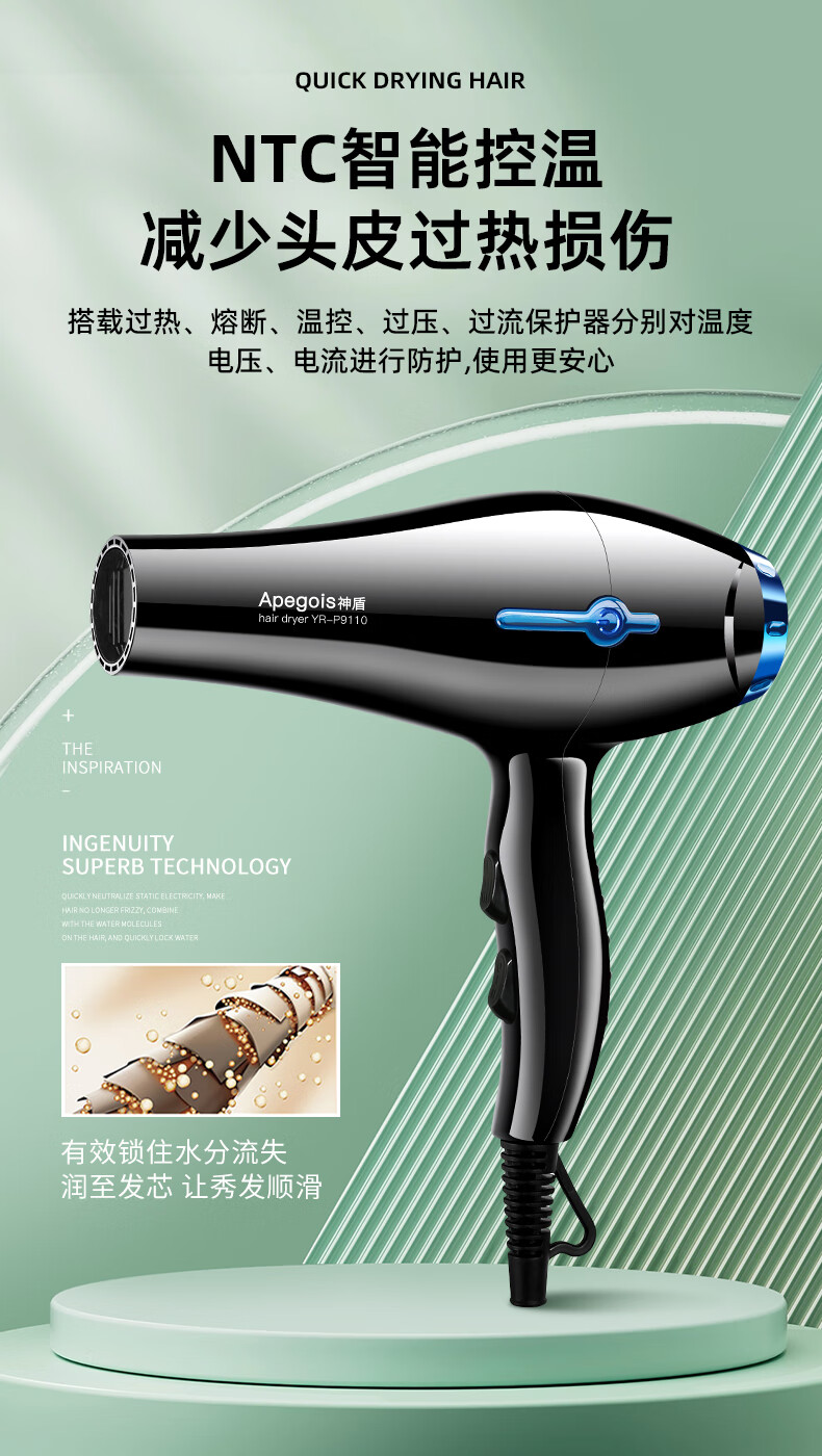 Aegis Hair Dryer Home High Power 2100W Hot and Cold Air Professional Hair Salon Level Barber Shop Constant Temperature Hair Dryer Black 2100W