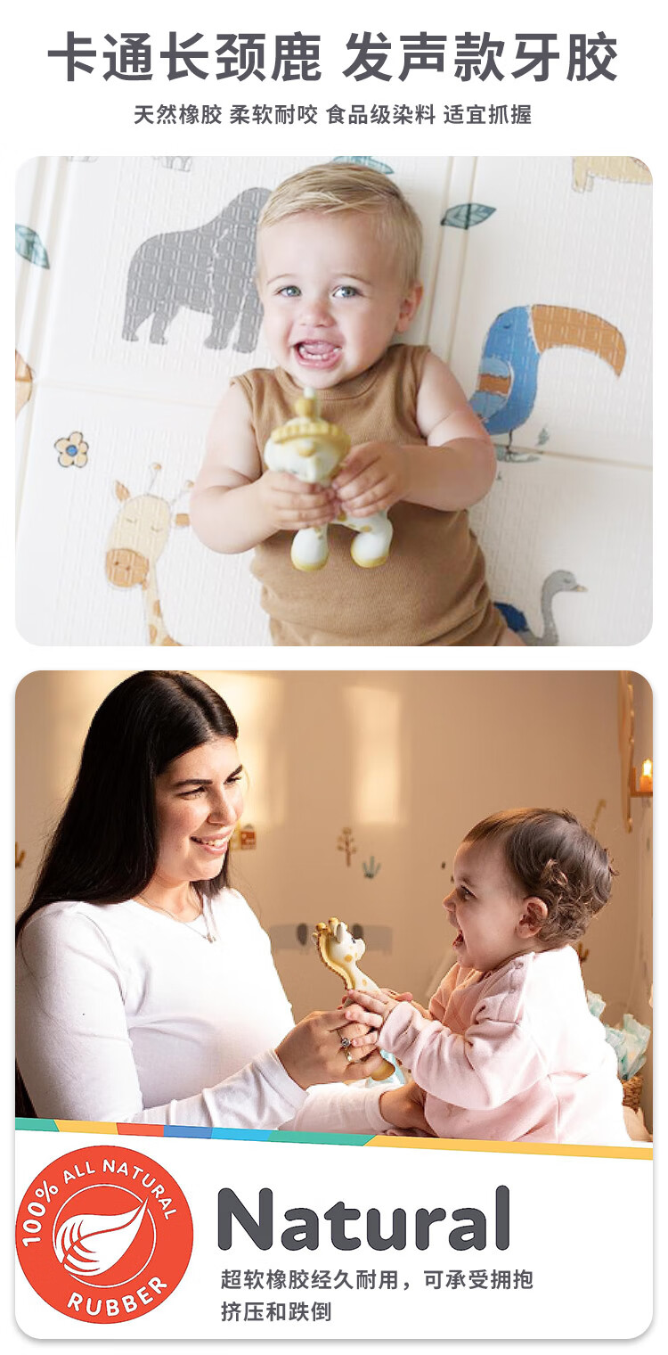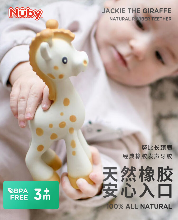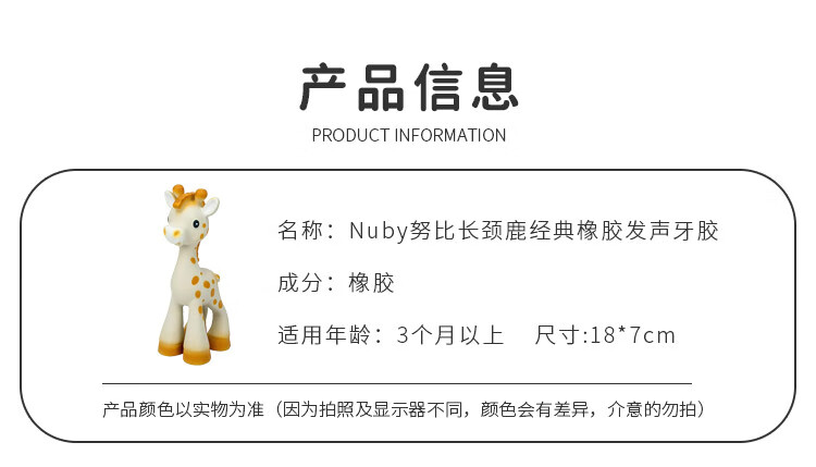 Nuby Giraffe Classic Rubber Sound Teether Anti-eating Hand Baby Chewable Teeth Fixation Rubber Giraffe 1 Pack