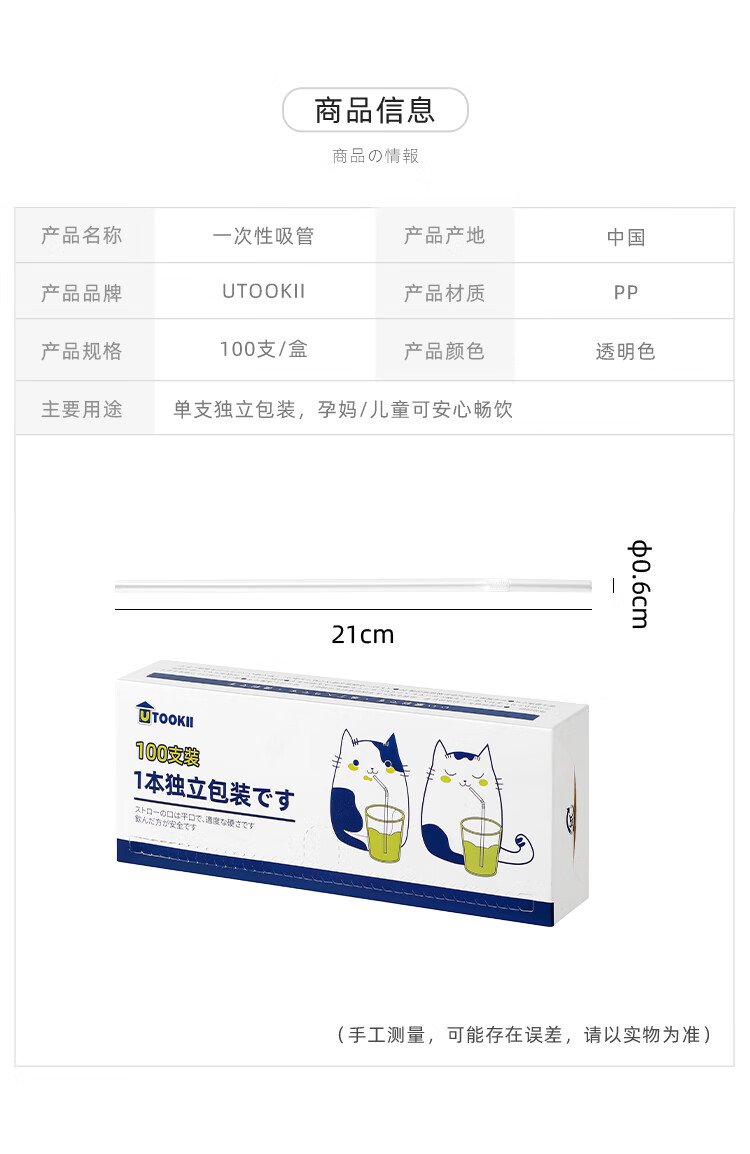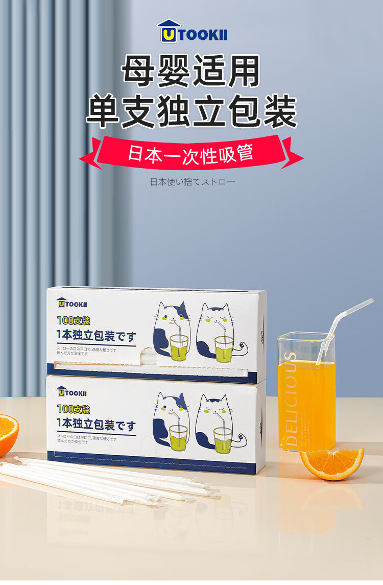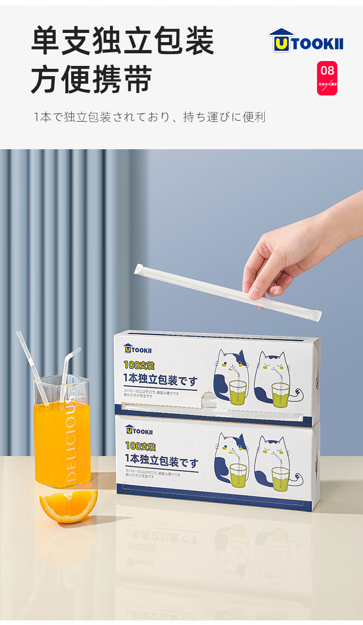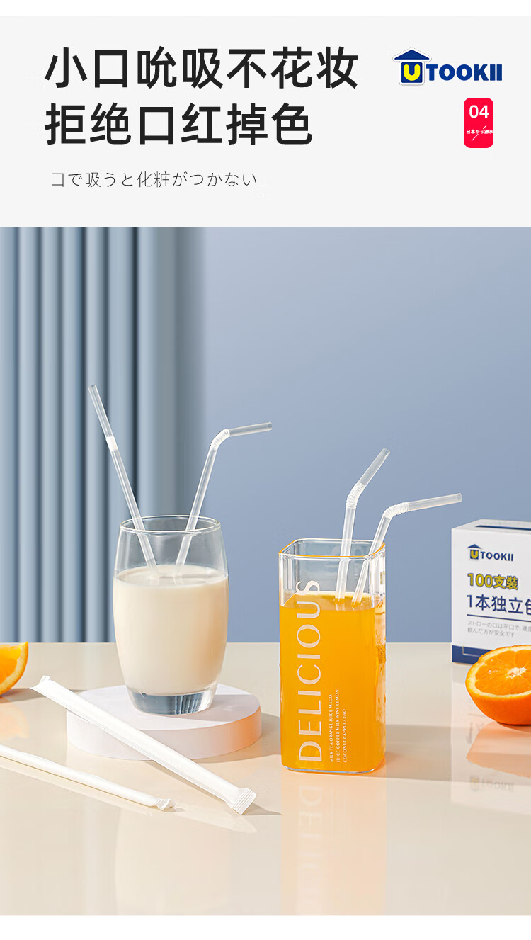 Disposable independent packaging of straws, transparent bendable long straws for coffee drinks, adult pregnant women, food-grade children's milk straws, baby elbow thin straws, disposable straws, individually packaged, 100 pieces