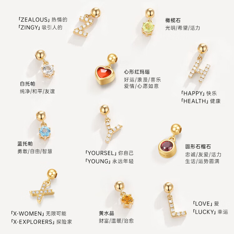 FENS Jewelry 18K Gold Gemstone Pendant 2.0 Gemstone DIY Custom Letter Chain Birthday Gift Love Pink Tourmaline Pendant Suitable for 2.0 Letter Chain-Gemstone