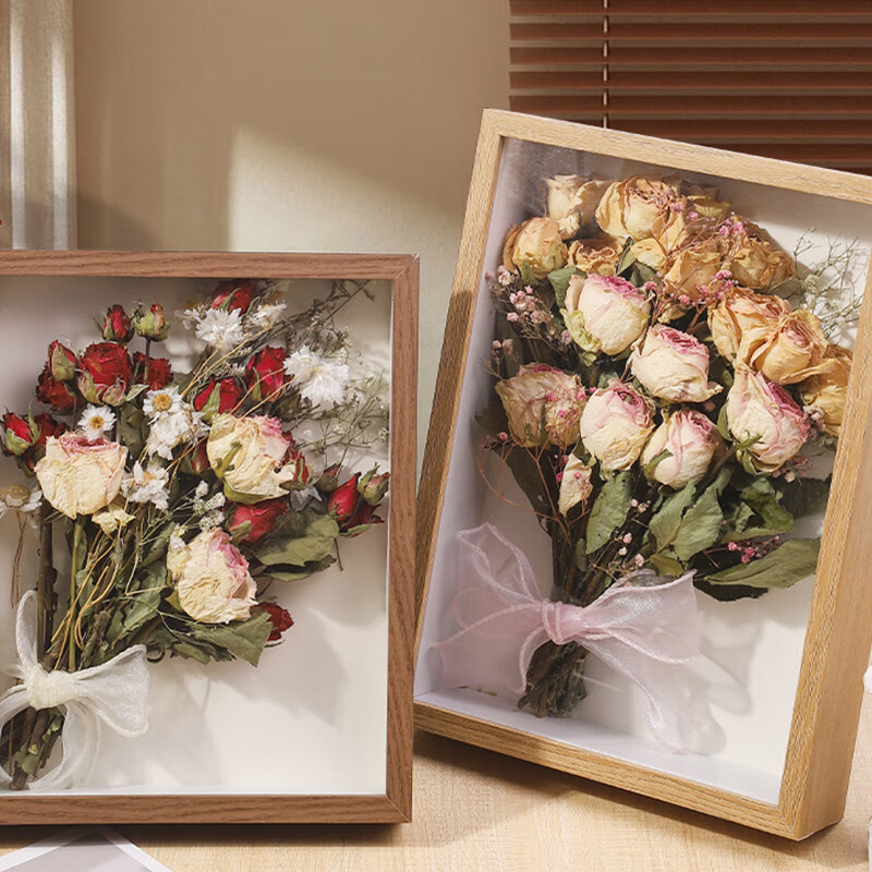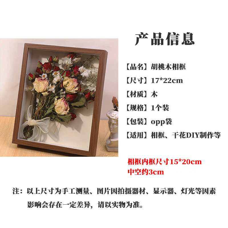 Jingji three-dimensional dried flower photo frame hollow 3cm shell specimens preserved flowers and plants framed picture frame table birthday gift walnut color 10 inches hollow 3cm 22*27cm
