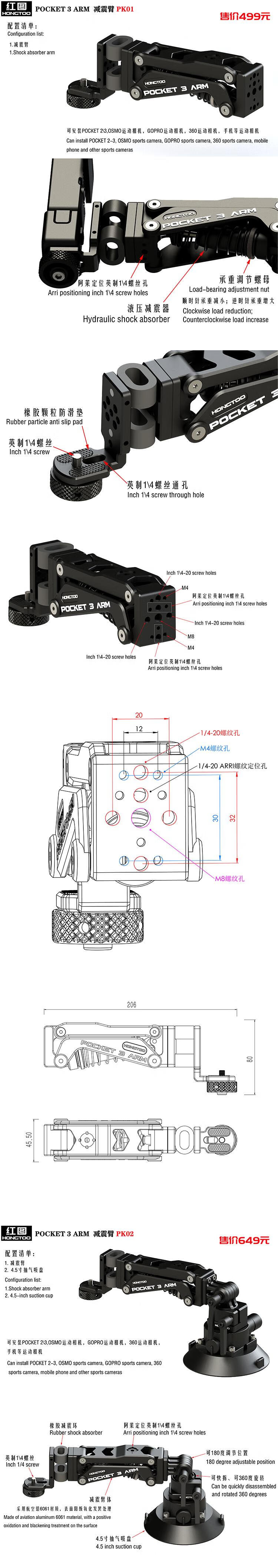 HONGTOO red picture is suitable for DJI Pocket3/OSMO ACTION/GOPRO pocket action camera travel shooting, car shock absorber suction cup shooting, mobile phone car shooting shock absorber arm, shock absorber arm PK02 with suction cup set