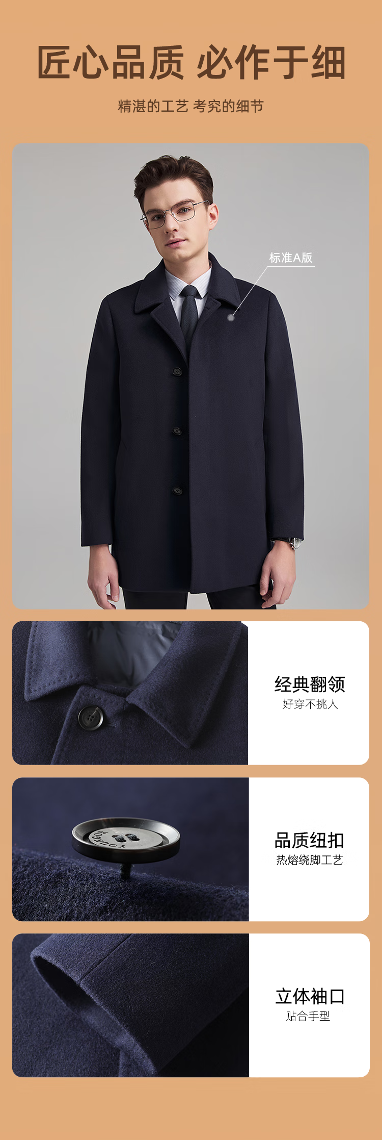 YOUNGOR Coat Men's Autumn and Winter Young Men's Coat Warm Liner Business Coat Gray VYSY01N122DFA S 165/88A