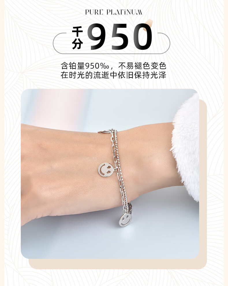 GsunG Platinum Women's Bracelet PT950 Smiley AB Bracelet Fashion New Platinum Bracelet Women's Smile Bracelet for Girlfriend Priced by the gram, contact customer service before bidding for gold price