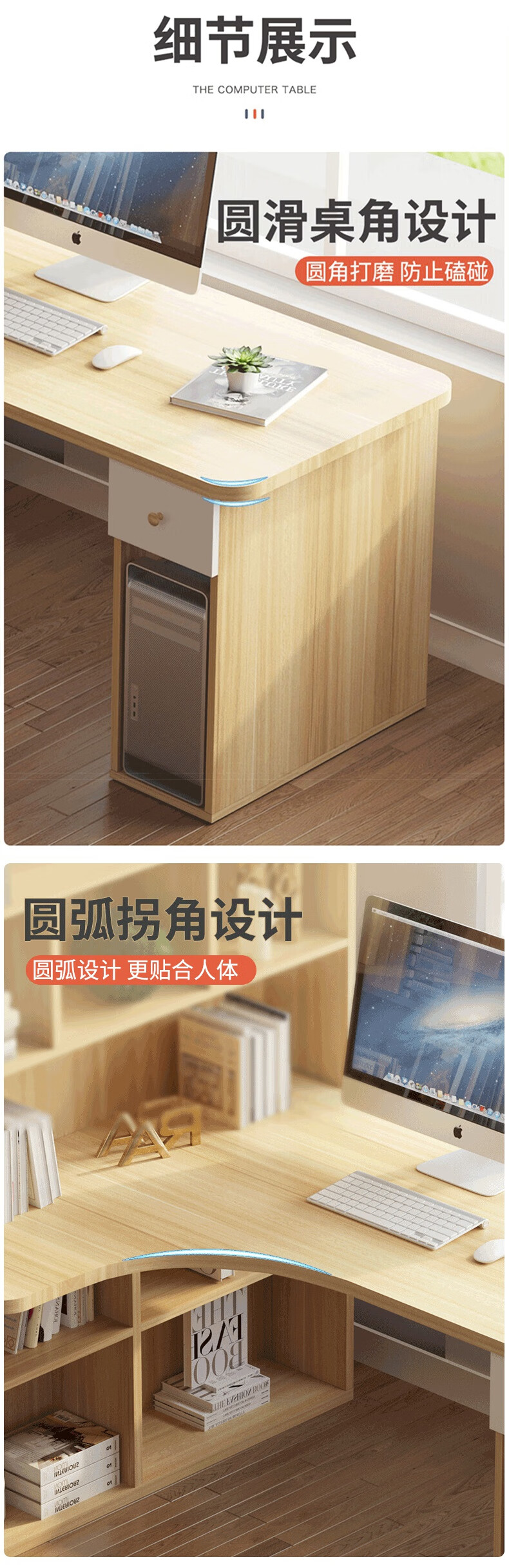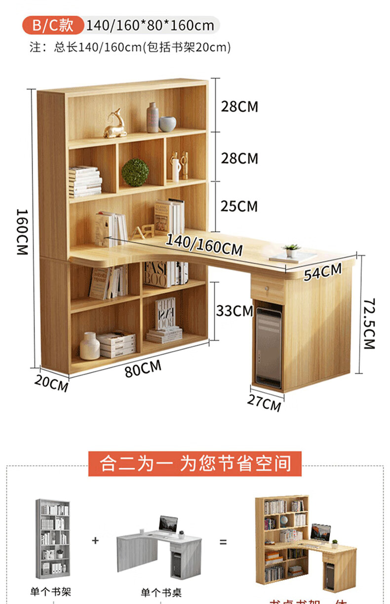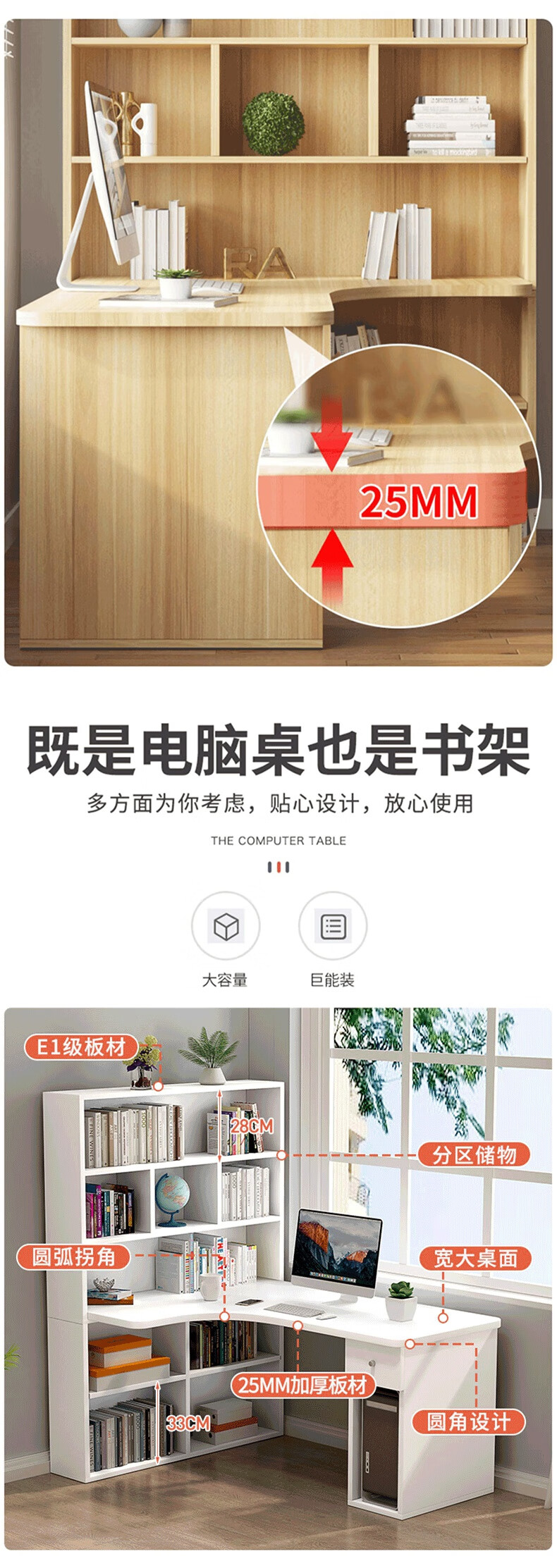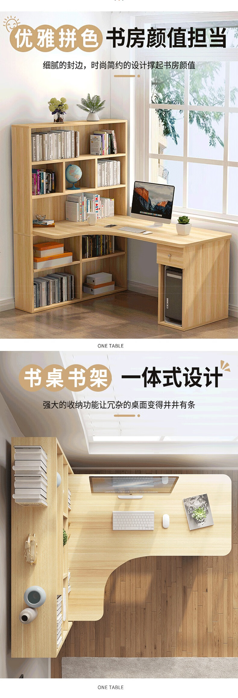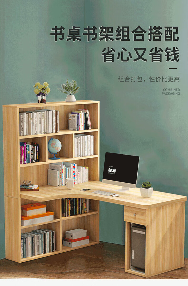 Slikai Desk Bookshelf Integrated Desk Bookcase Combination Corner Solid Wood Corner Student Study Desk Writing Desk L-shaped Computer Light Walnut Length 140 Bring the goods to your home