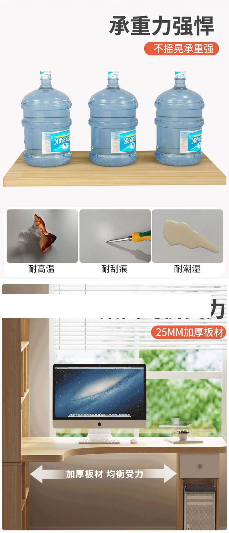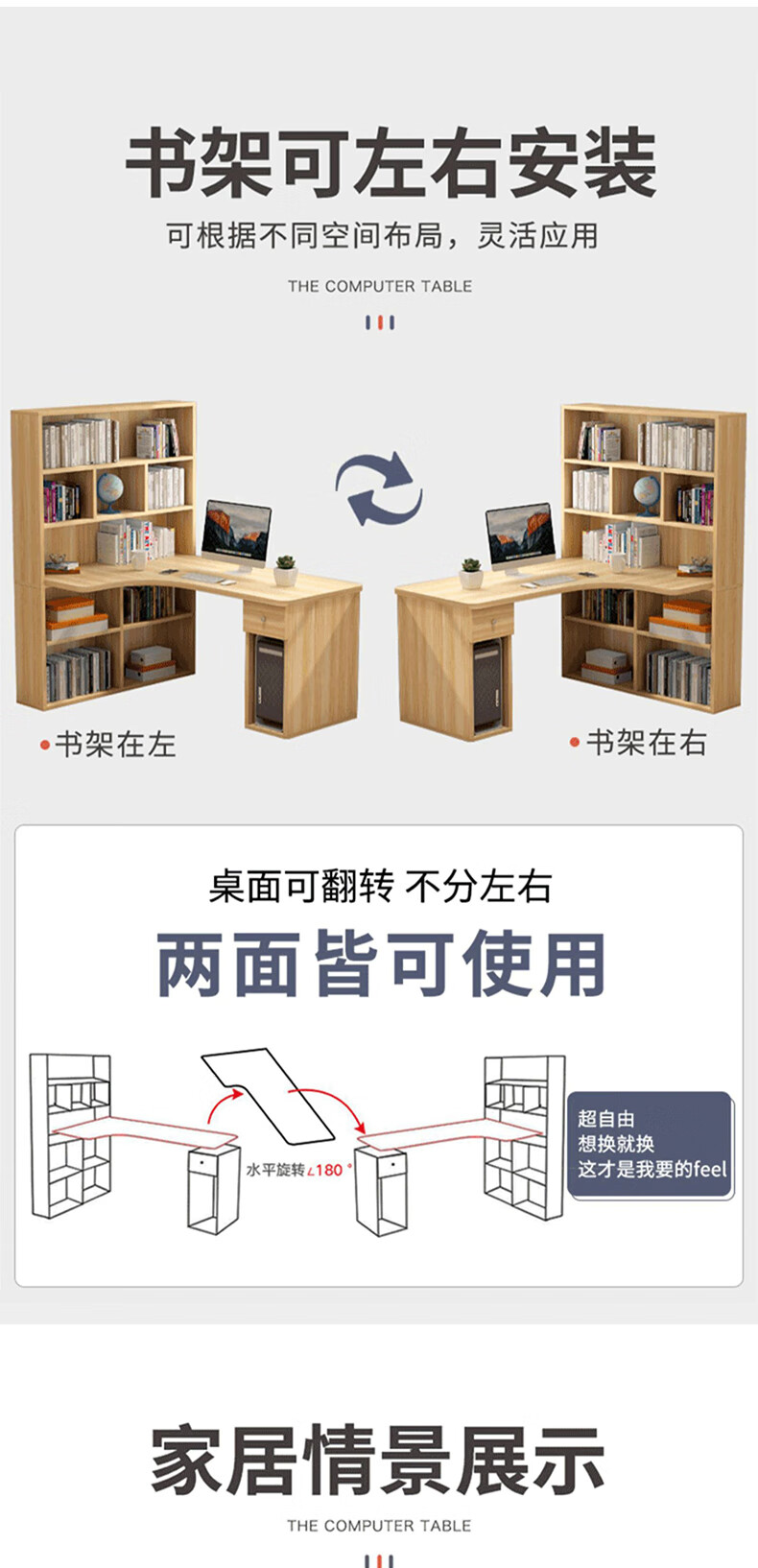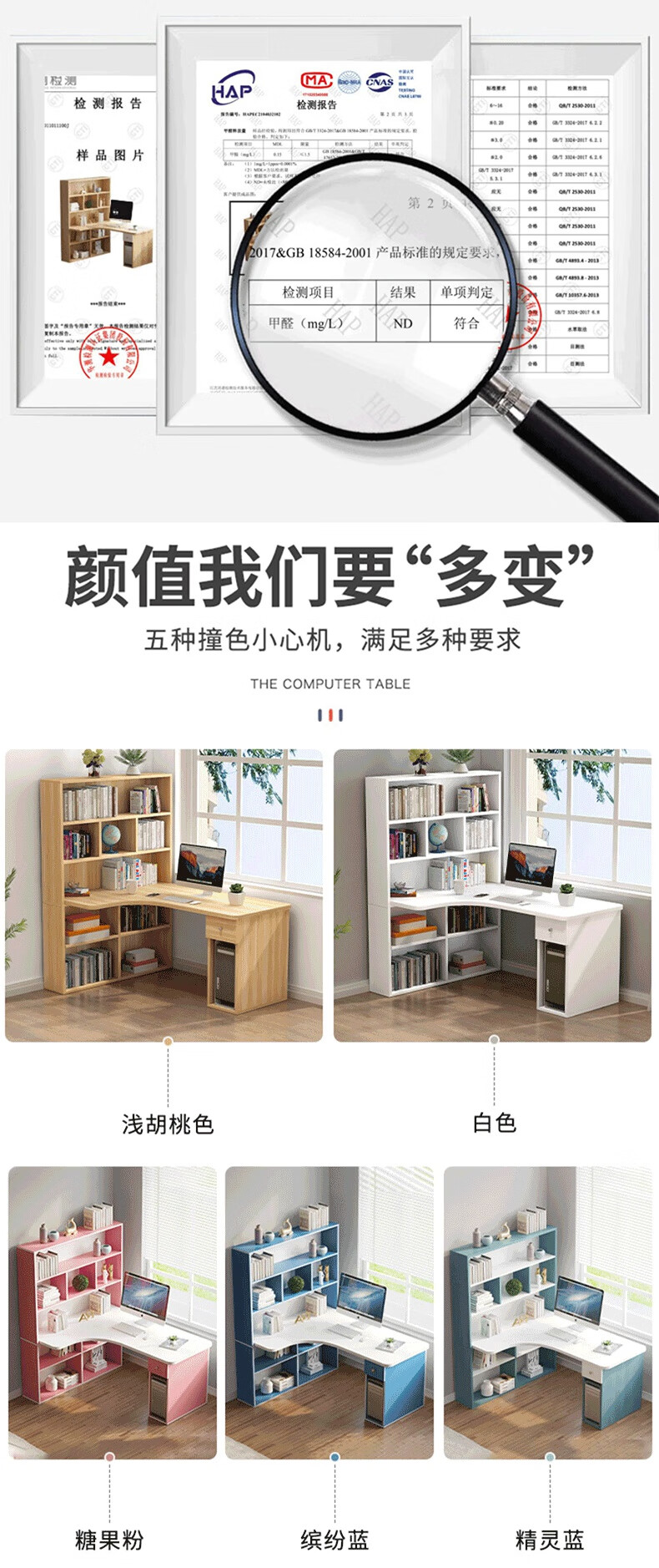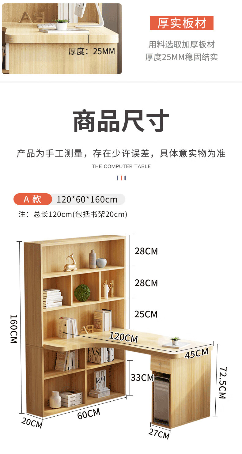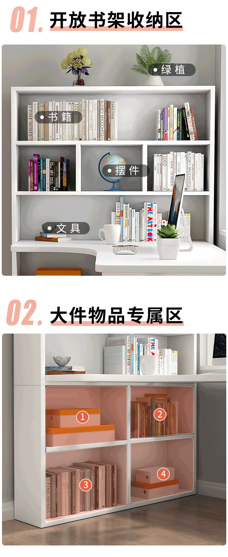 Slikai Desk Bookshelf Integrated Desk Bookcase Combination Corner Solid Wood Corner Student Study Desk Writing Desk L-shaped Computer Light Walnut Length 140 Bring the goods to your home