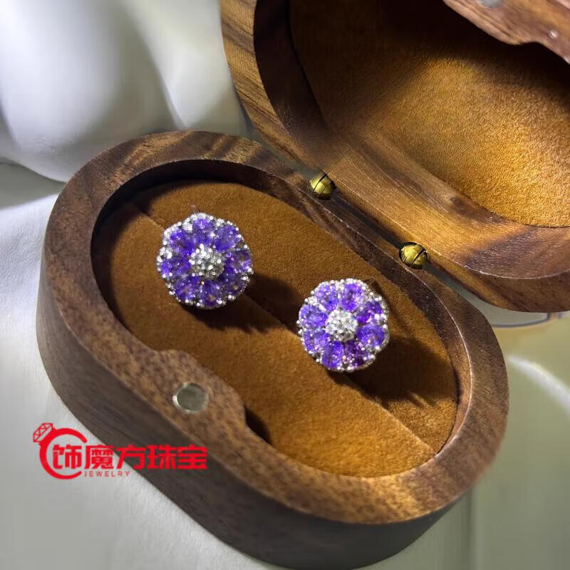 Fat Donglai quality tanzanite earrings natural l natural tanzanite women's 925 silver amethyst earrings simple and light natural tanzanite amethyst B earrings
