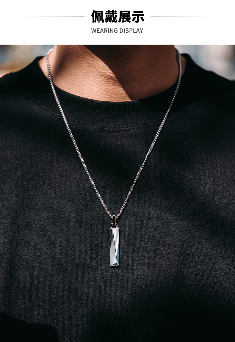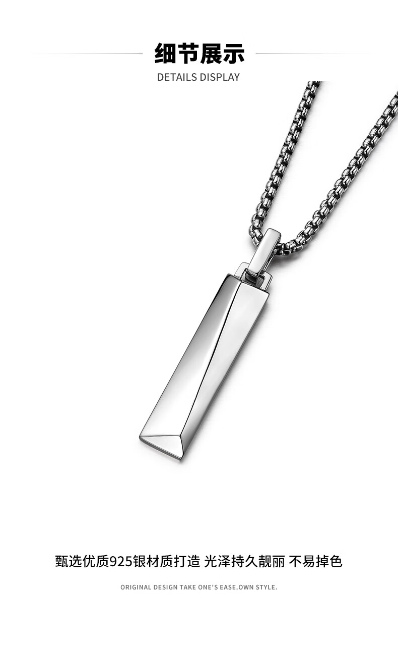 Mingyang Decorative Sea can be engraved sterling silver irregular solid pendant necklace men's trendy simple high-end Chinese Valentine's Day gift sterling silver pendant + steel chain-60cm