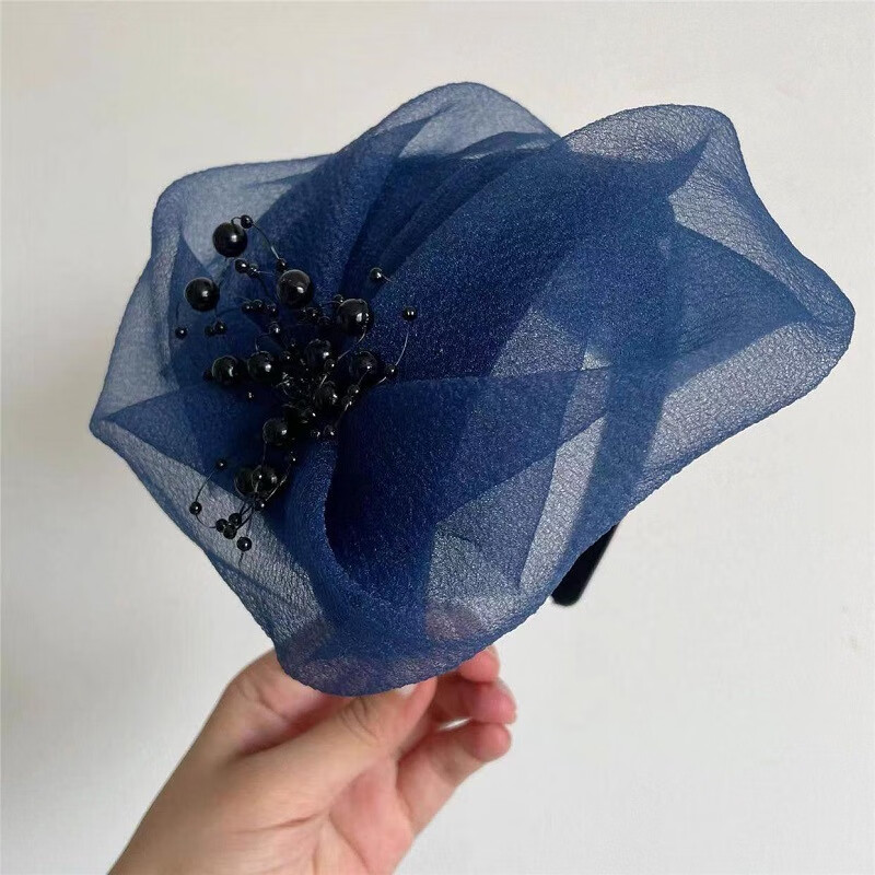 CHUXIANG super wide-brimmed mesh half-hat headband for women, French-style hairpin to cover gray hair, evening hairpin, temperament, face-showing, small pressed hair headband, headband F050 black A24-305