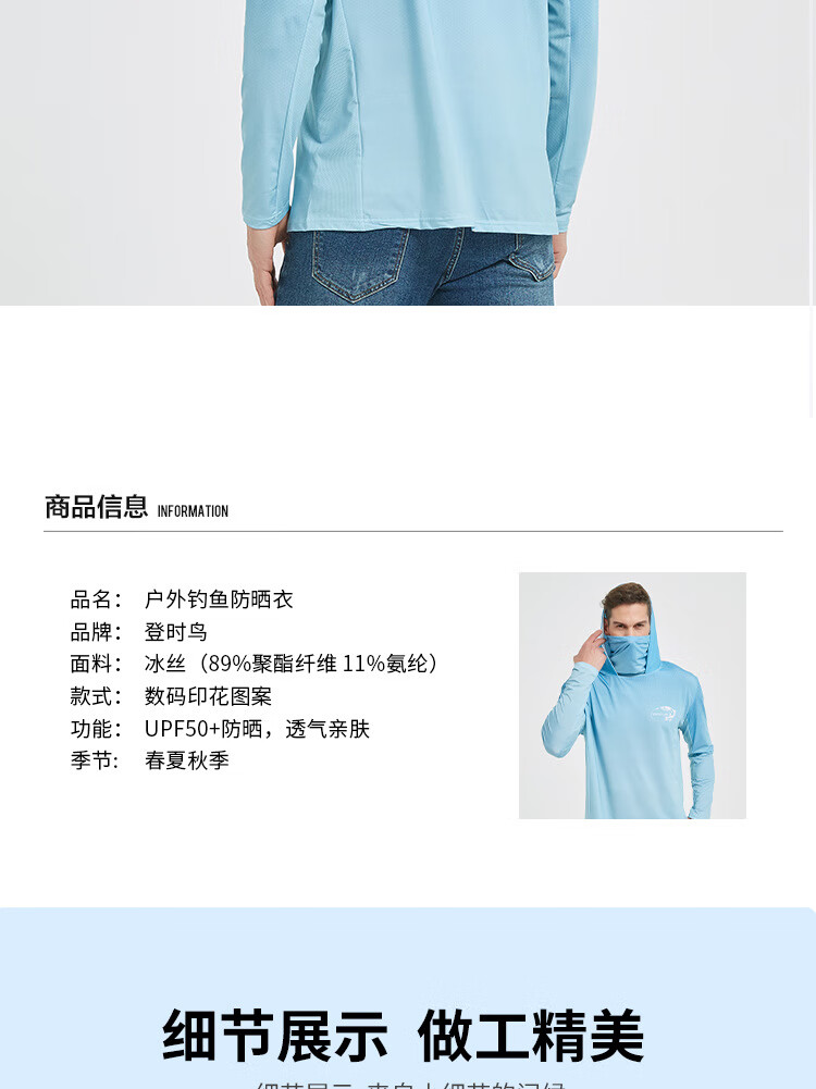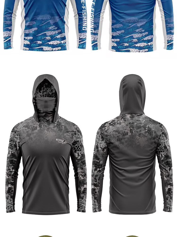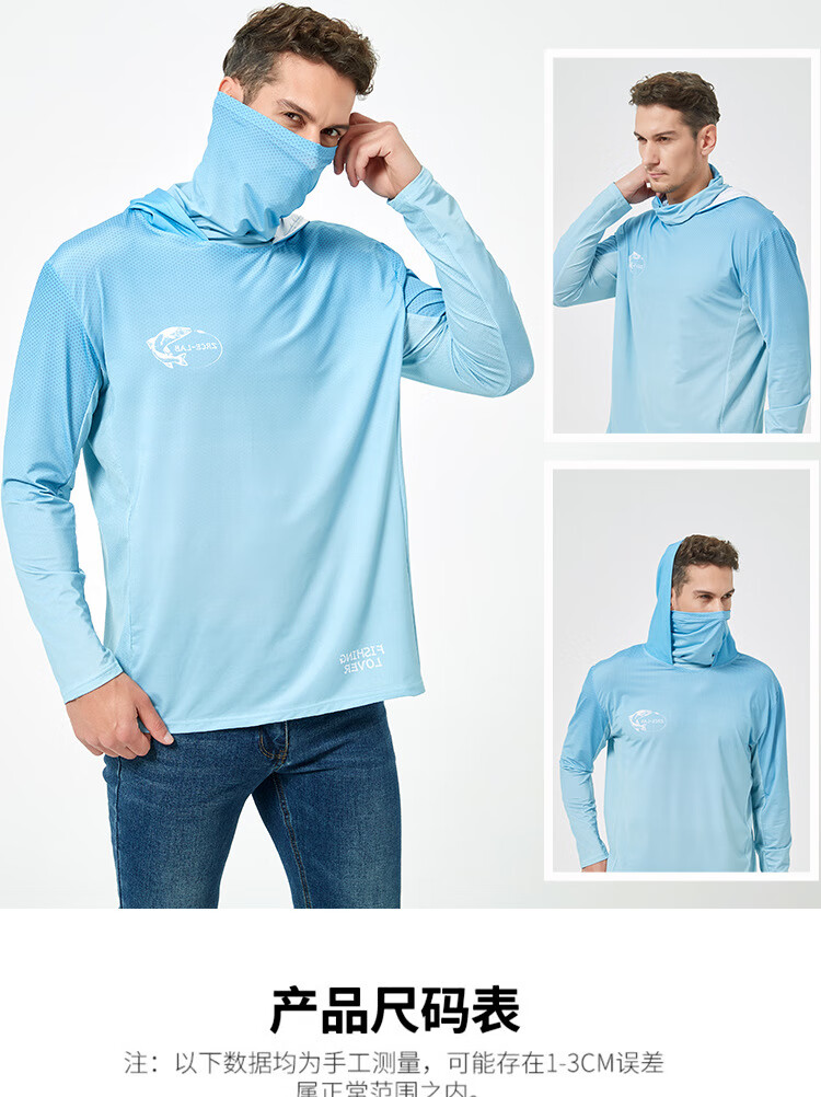 Fishing clothing men's summer ice-sense hooded with mask breathable sun protection clothing loose outdoor ice silk fishing sun protection clothing JD-02 L recommended 140-155 Jin Jin equals 0.5 kg