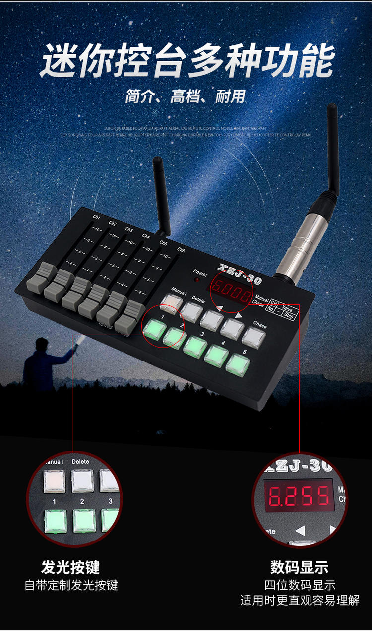 Lighting console mini XZJ-30 controller stage lighting DMX512 programmable and portable dimming console mini XZJ-30 console