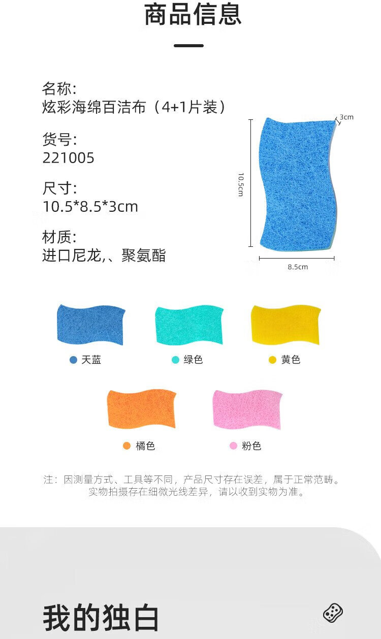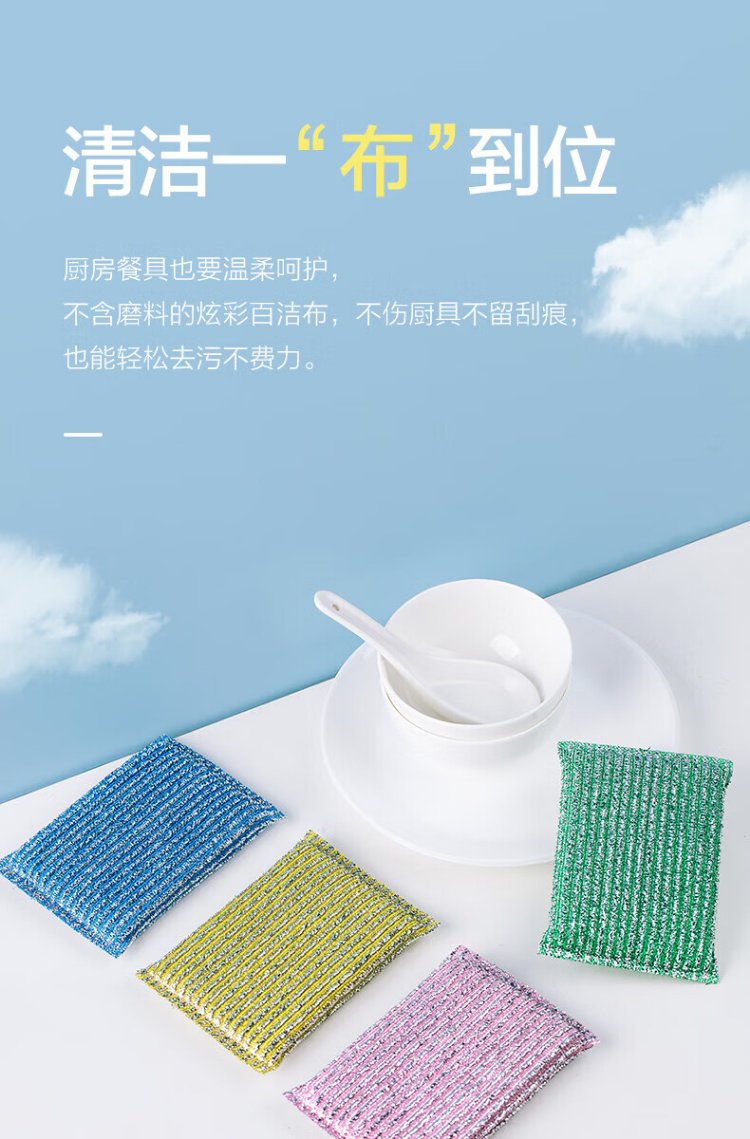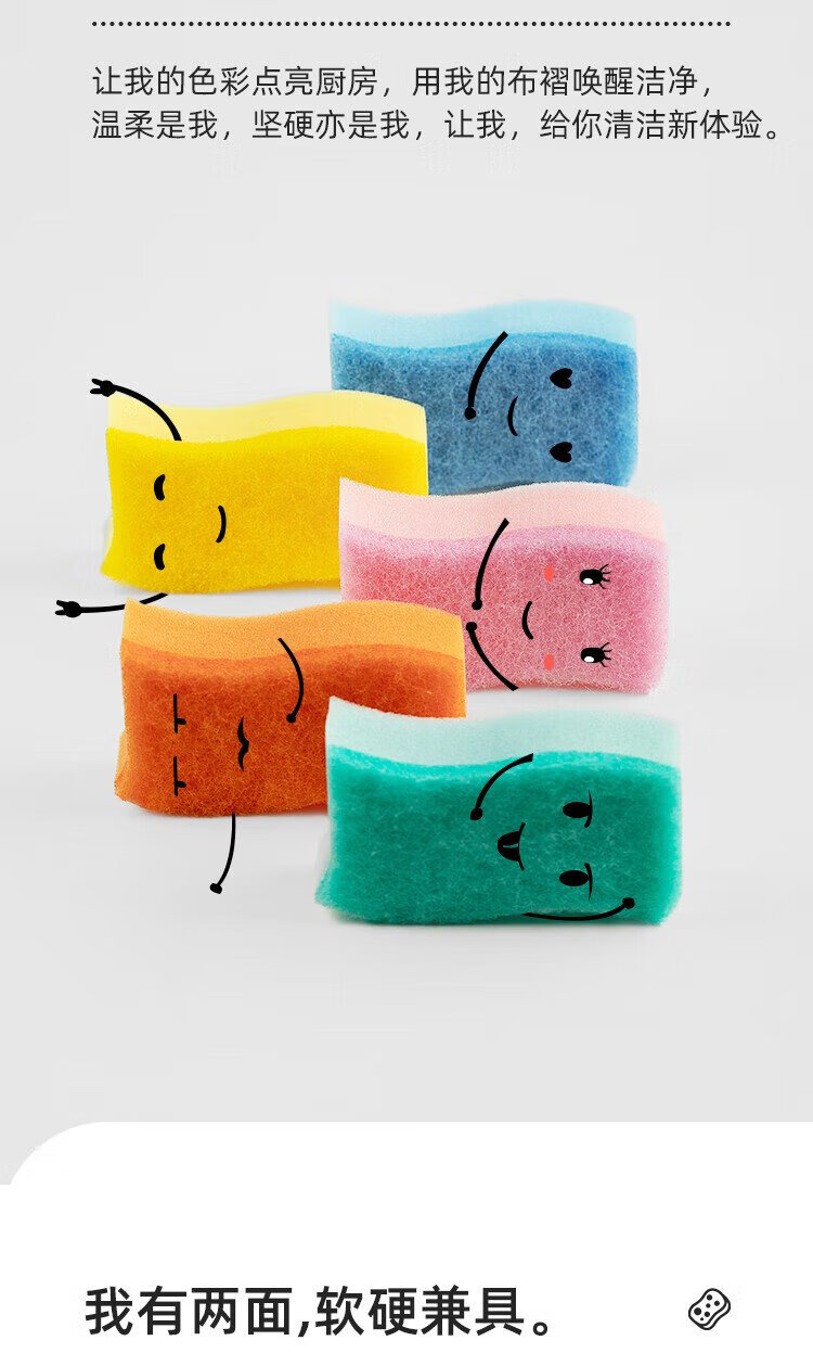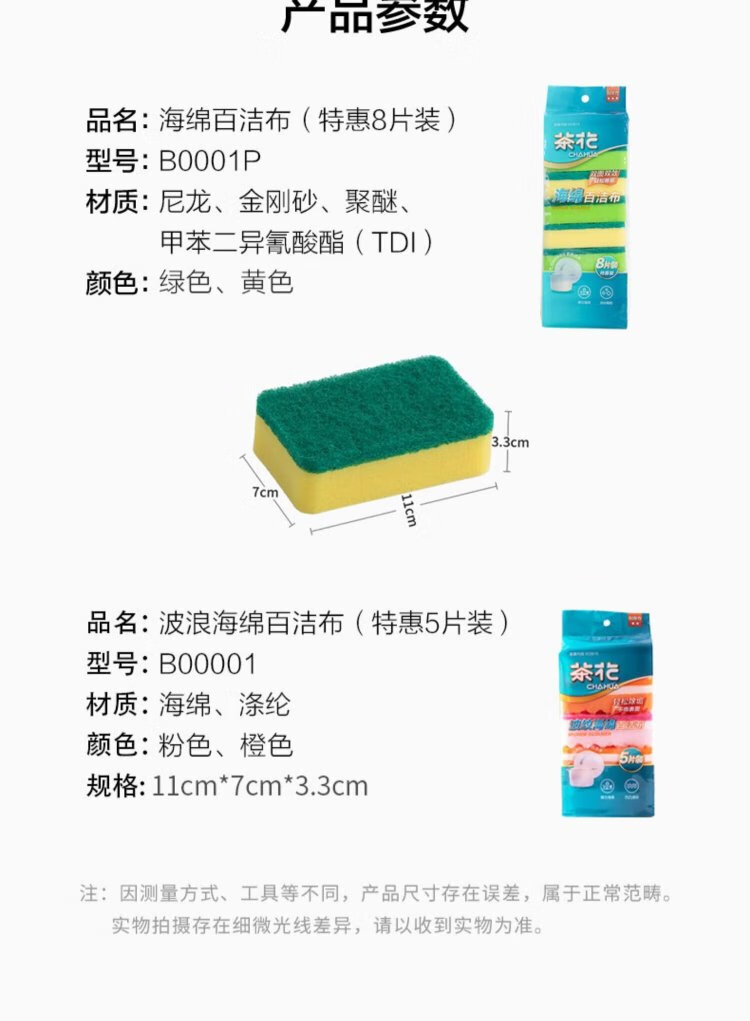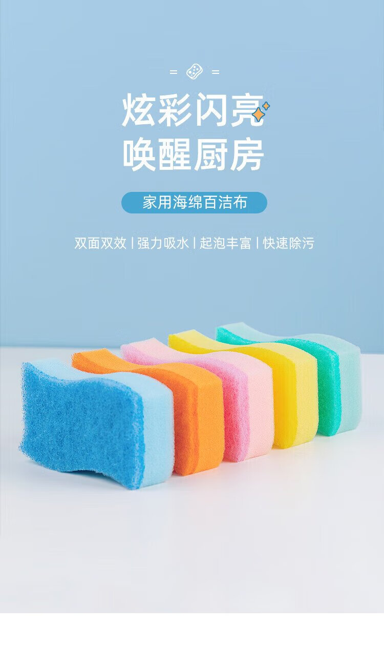 Camellia (CHAHUA) scouring pad sponge, dishcloth, kitchen special household dish towel, pot scouring tool, dish rag double-sided, colorful sponge scouring pad, 1 pack of 5 pieces