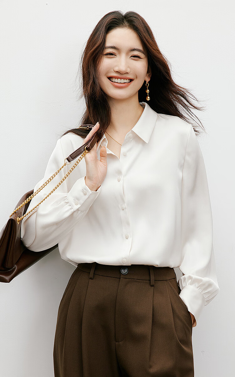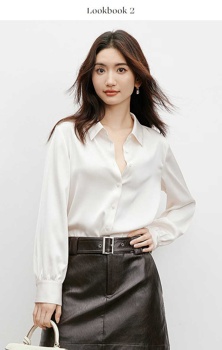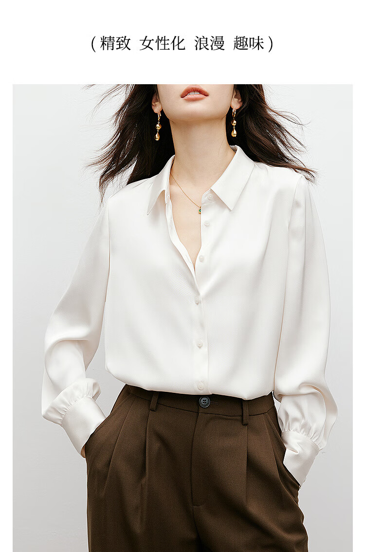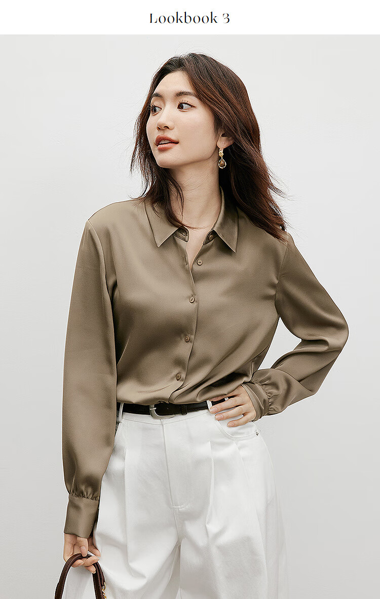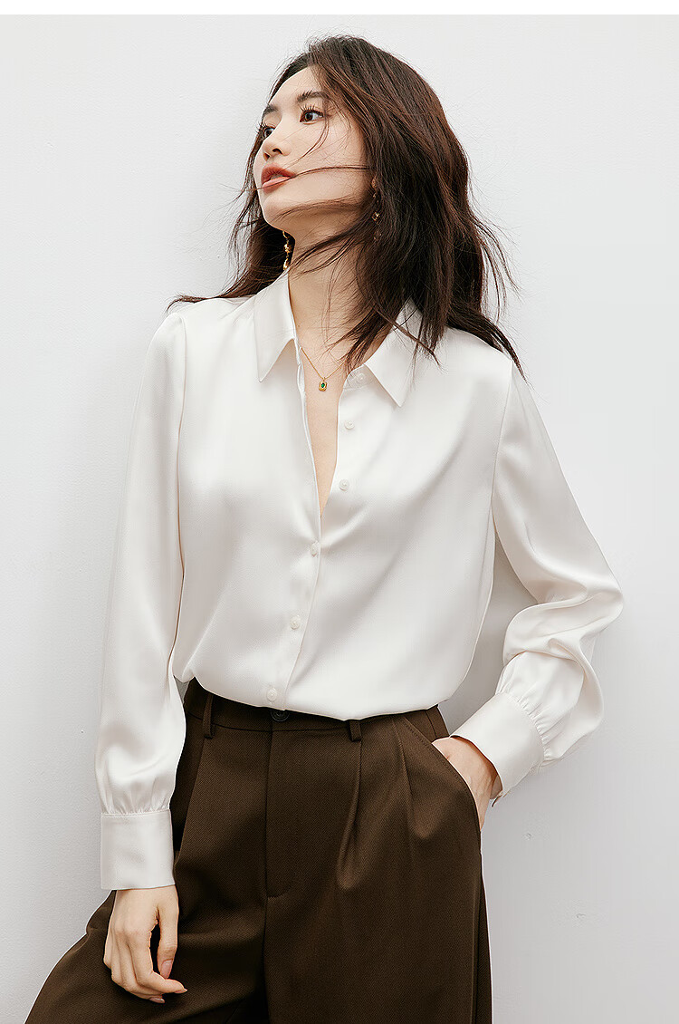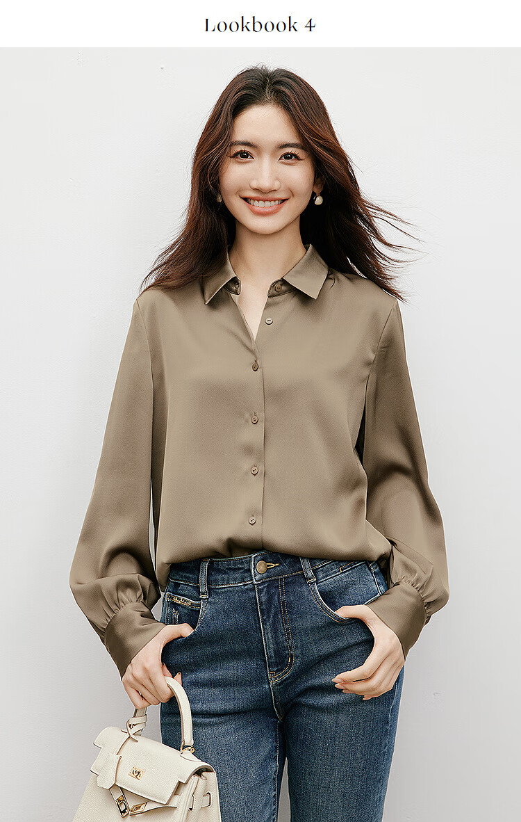 Red sleeves cover the flesh and look slimming tops for women, high-end shirts, spring and autumn new women's drapey satin smooth textured tops M 010 (S size XL size pre-sale 3.25) M