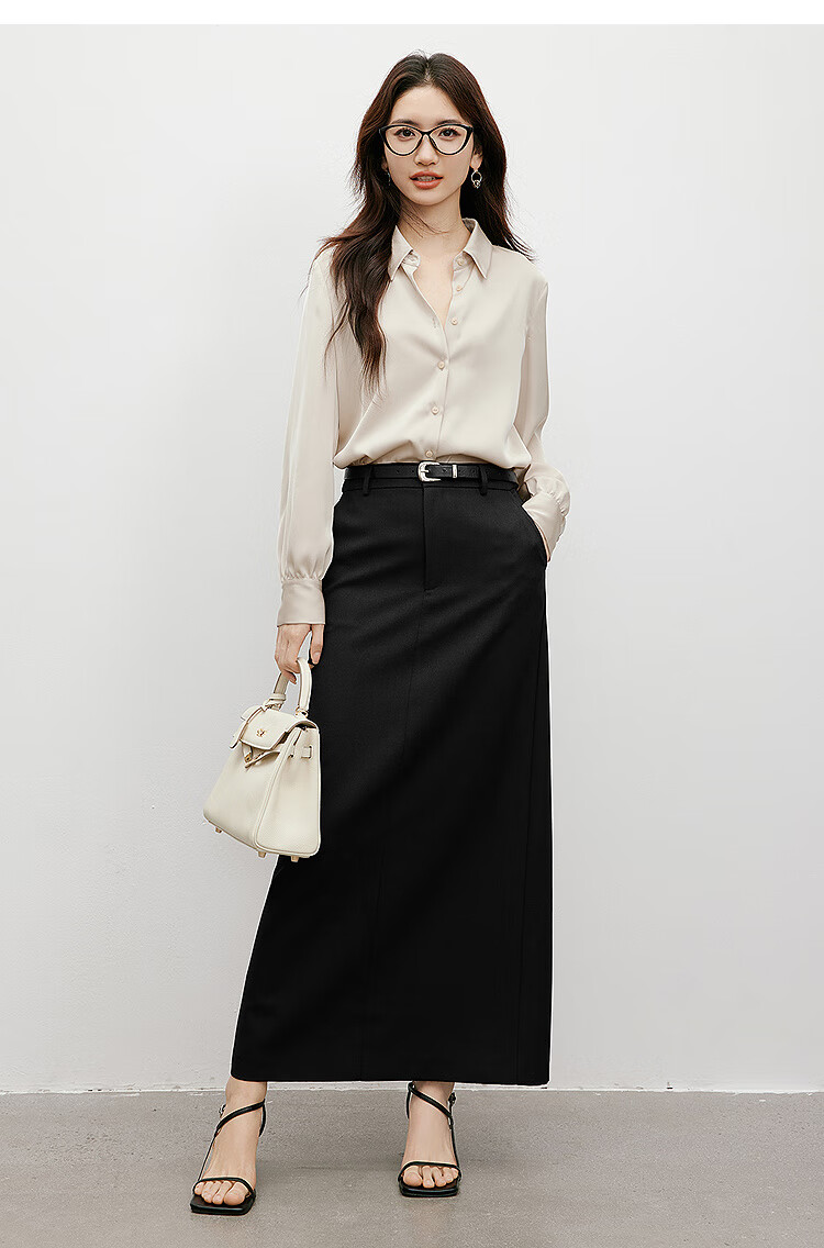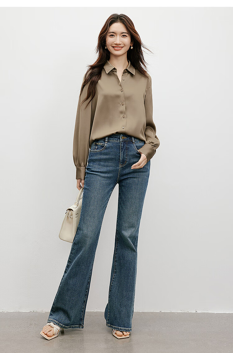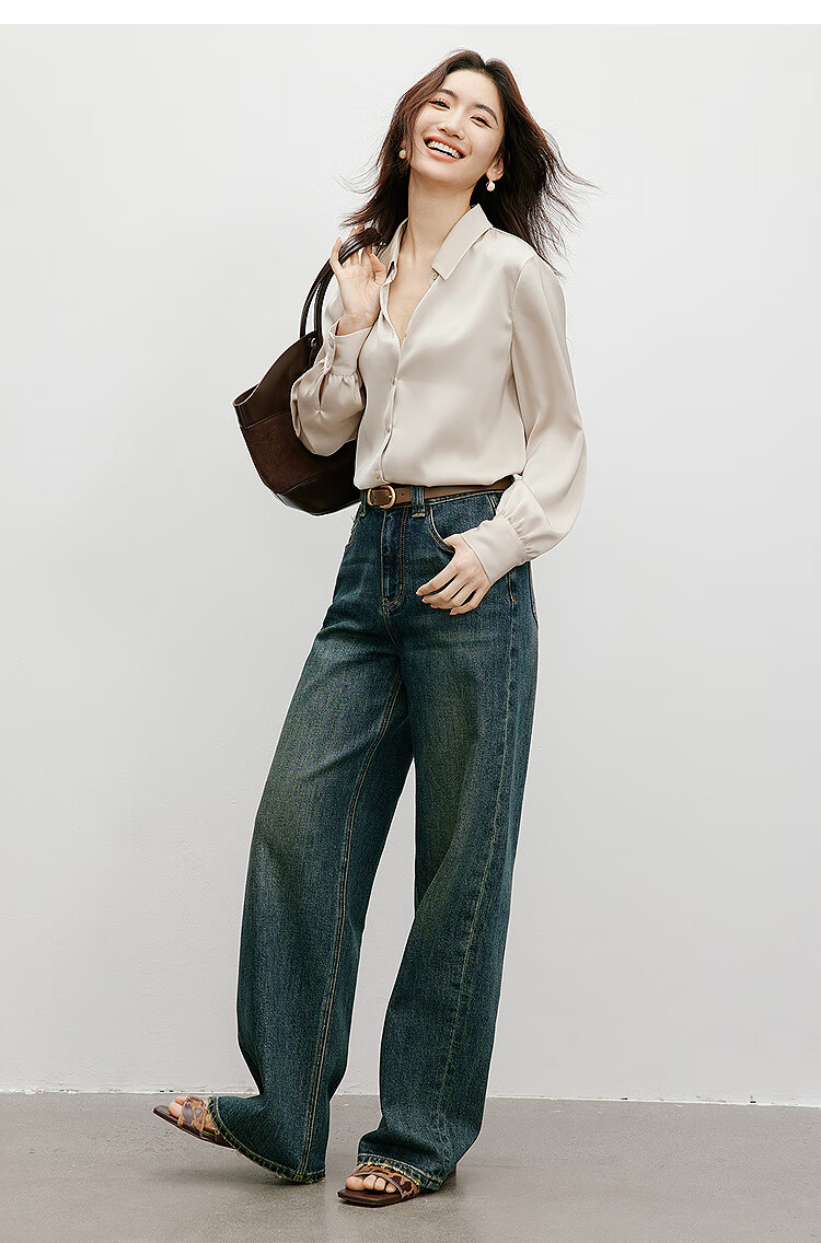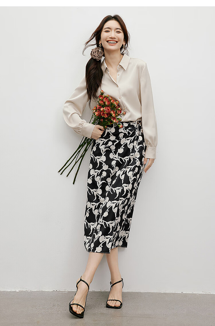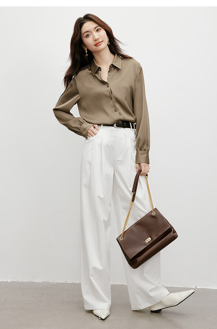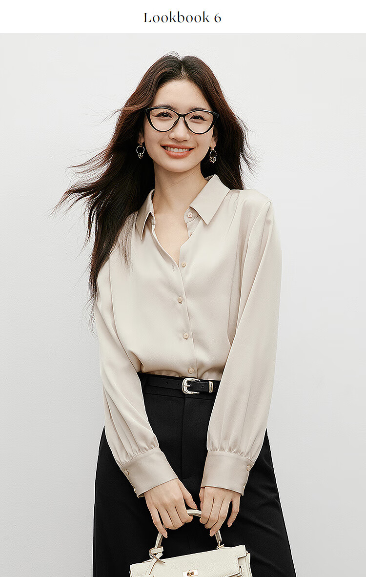 Red sleeves cover the flesh and look slimming tops for women, high-end shirts, spring and autumn new women's drapey satin smooth textured tops M 010 (S size XL size pre-sale 3.25) M