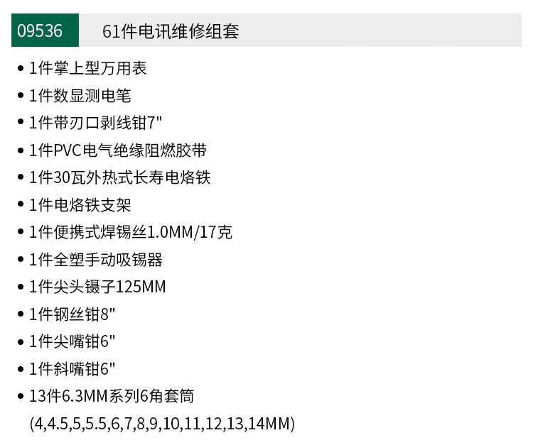 Shida (SATA) tools 56 pieces 61 pieces telecommunications maintenance set Electrician and electronics maintenance set 09535 09536 09535 56 pieces telecommunications tool set