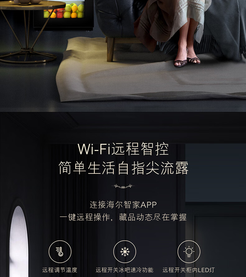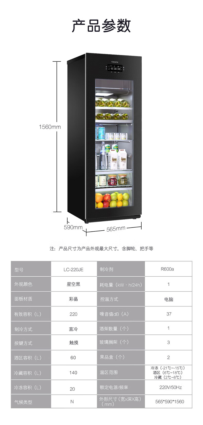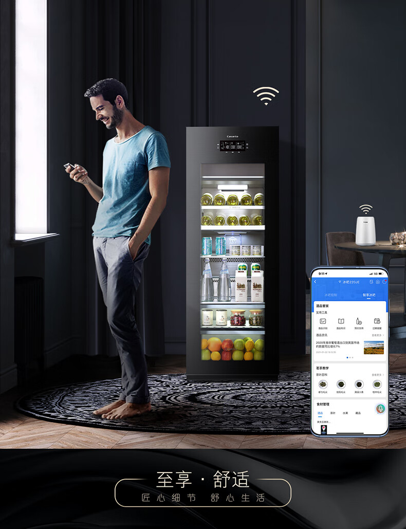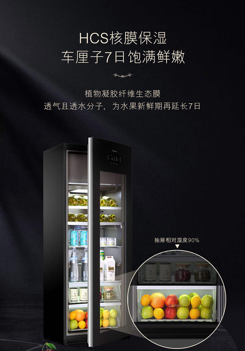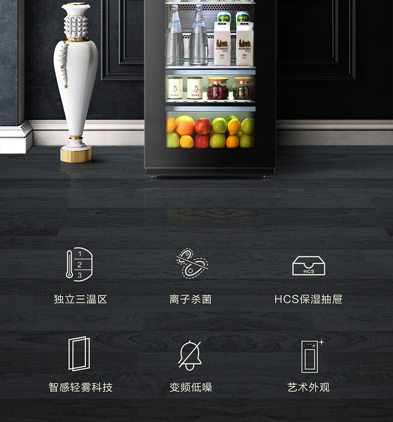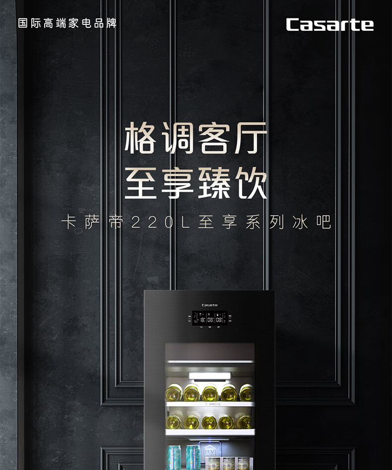 卡萨帝220升三温区家用办公室冷藏柜暖藏冰吧 茶叶饮料水果保鲜柜小型冰箱 黑色220L