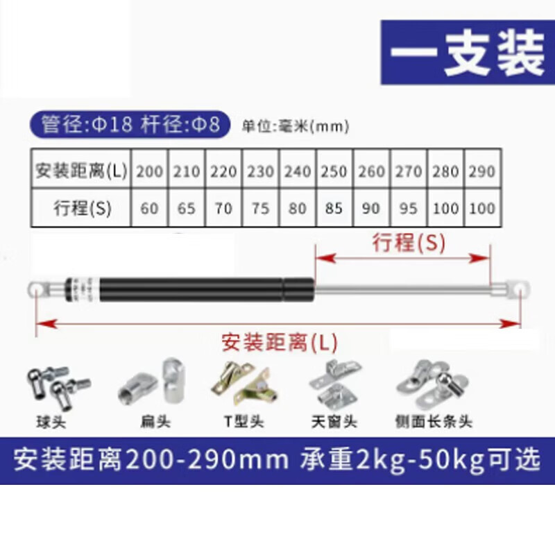 Gas spring hydraulic rod support rod telescopic pipe diameter 18 rod diameter 8 stroke 85mm center distance 225mm pressure 5 kg customized