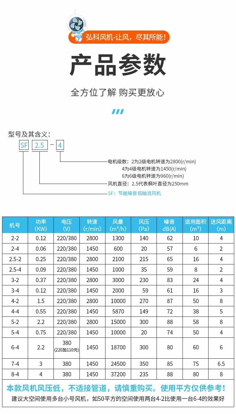 SF axial flow fan powerful low noise smoke exhaust fan high speed industrial duct ventilation dust removal fan SF2-4 60W ducted 220V