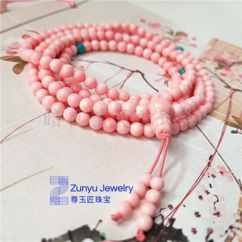 Real coral bracelet natural collection grade pink Beibei Buddha beads bracelet 4mm 216 beads necklace 9mm 108 beads