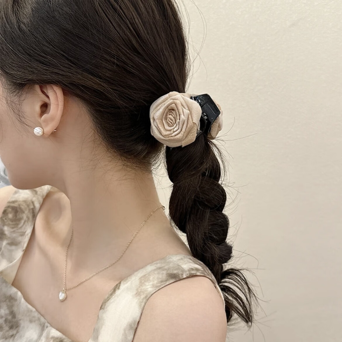 Dry Rose High Ponytail Clip Temperament and High-end Hair Clip for Women 2024 New Back of Head Shark Clip Dry Rose Milk Tea Color One