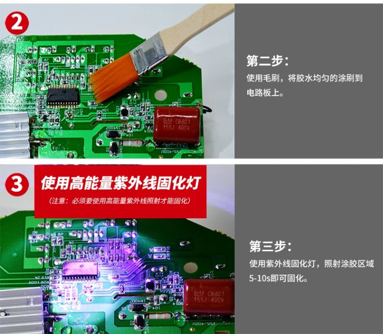 UV three-proof paint, environmentally friendly, quick-drying, three-proof glue, PCB circuit board, waterproof UV glue coating, protection, moisture-proof sealing, insulation, high-energy UV curing lamp