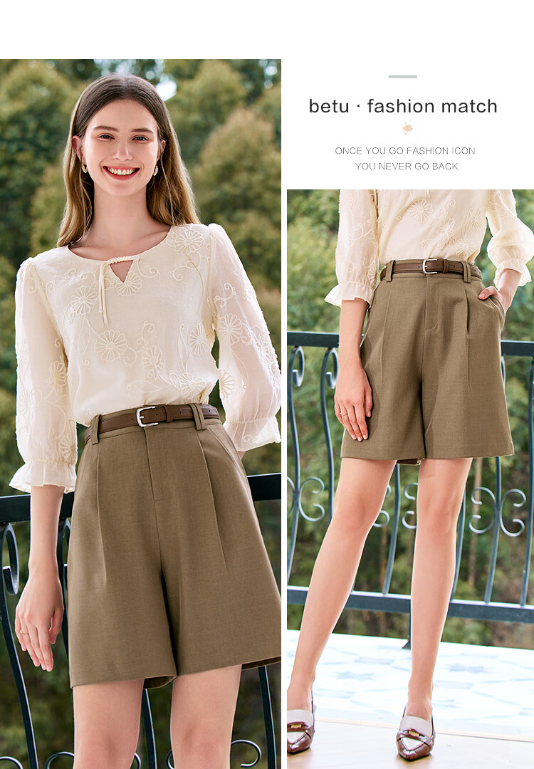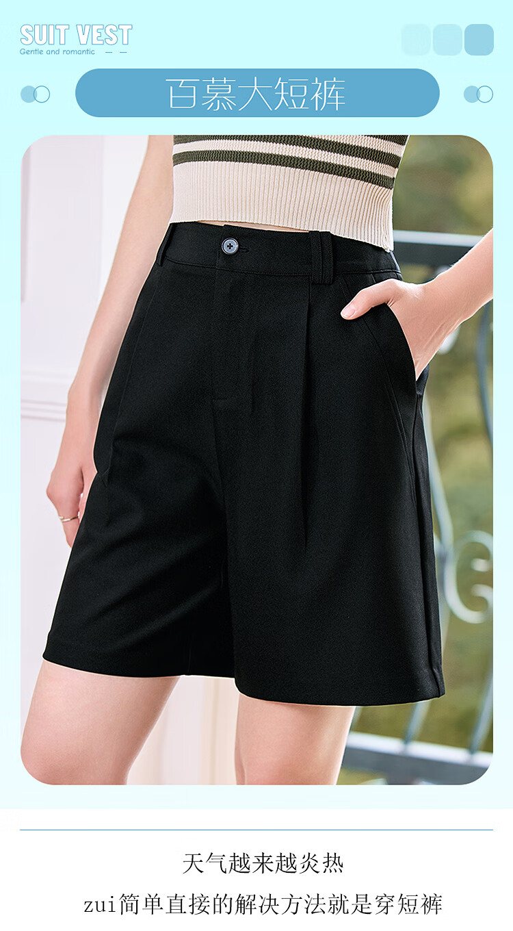 Betu Women's Summer New Casual Pants High Waisted Wide Leg Loose Versatile Suit Pants Casual Pants 2407T76 Black L