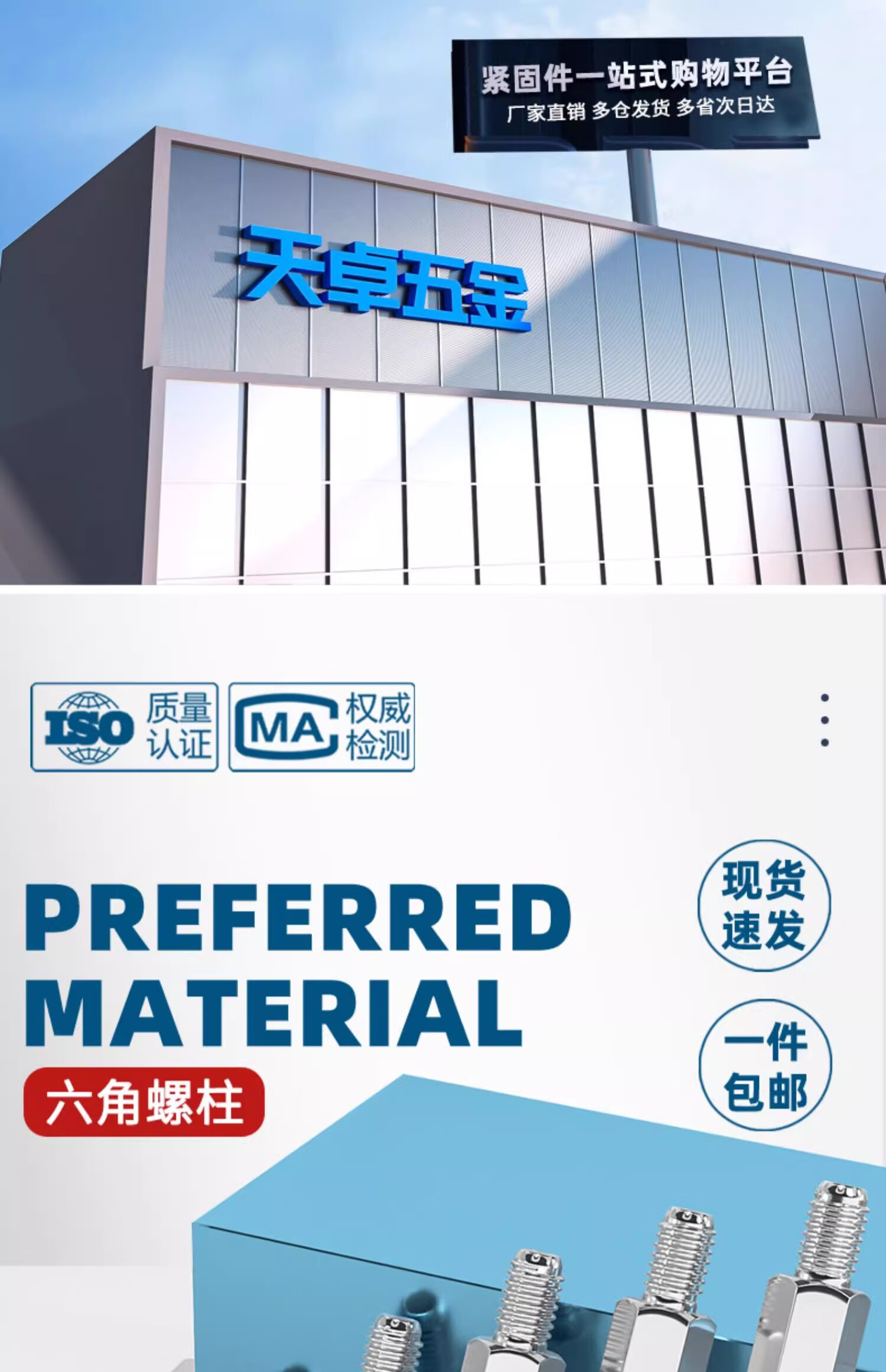 Tianzhuo Hardware 304 stainless steel single-head hexagonal binding post isolation column Yin and Yang stud single-pass internal and external tooth connection copper column external living M4*16+6 5 pcs