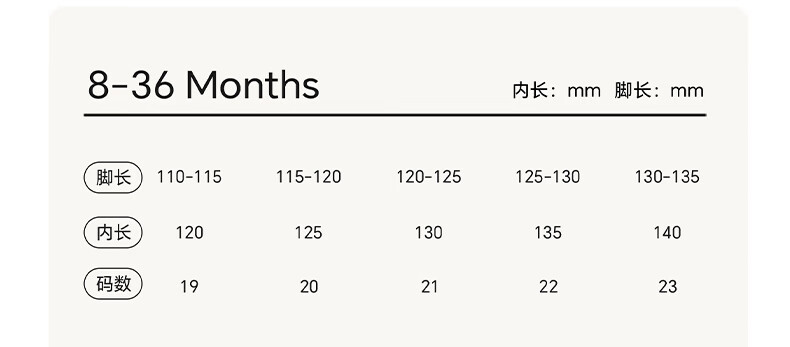 China (cm) 36 - 37 38 - 39 40 - 42 43 - 44 45 - 47