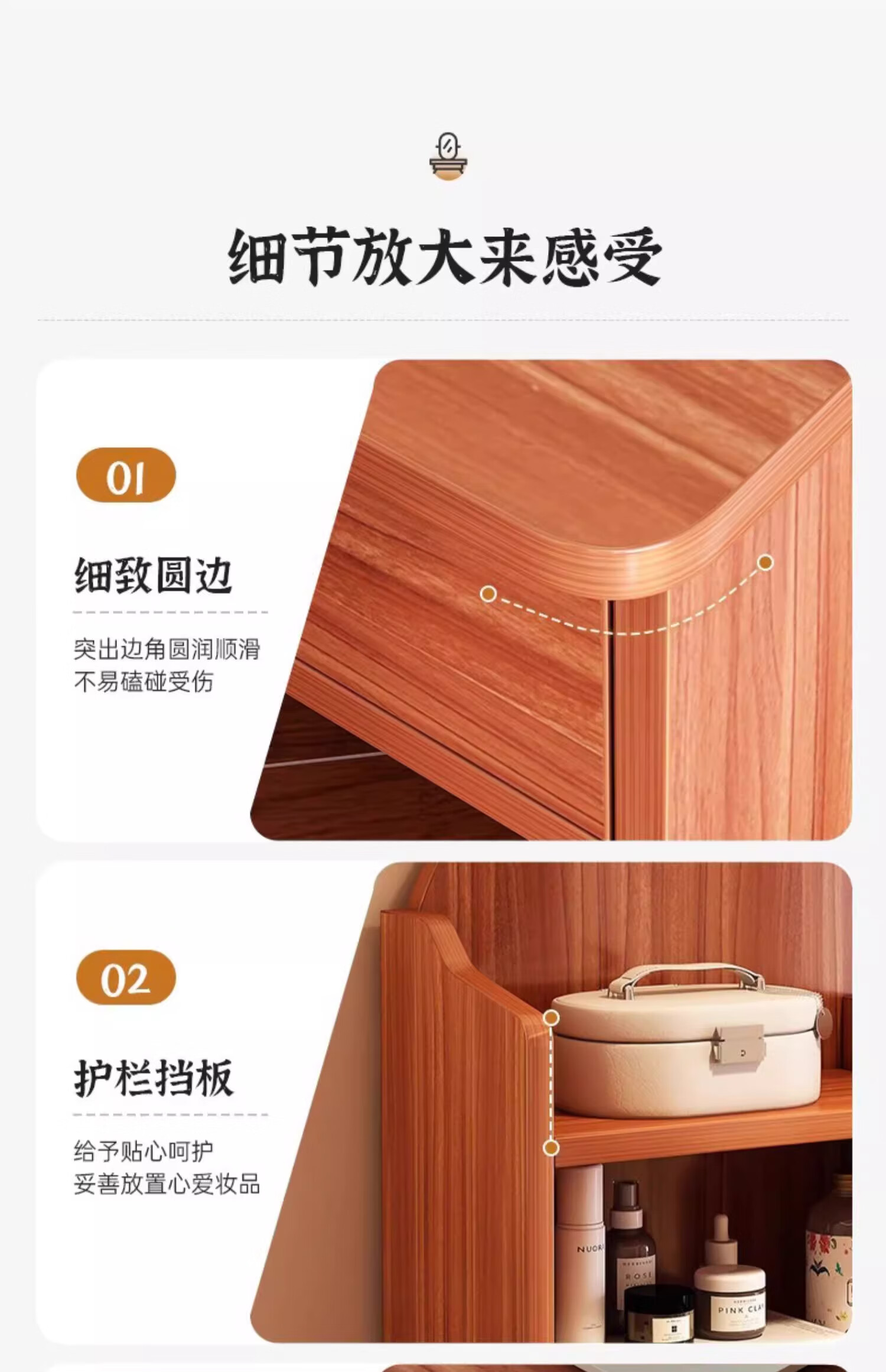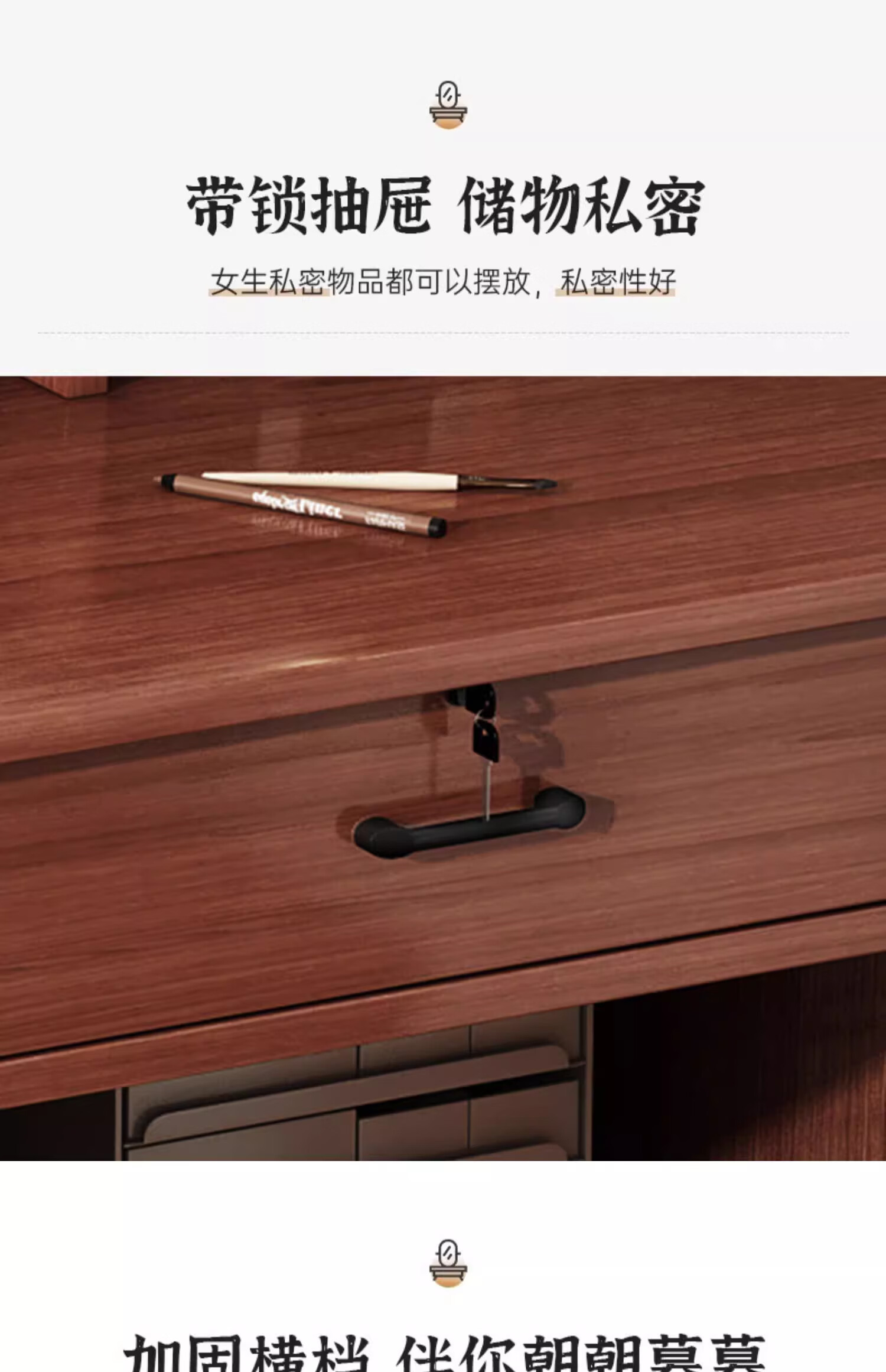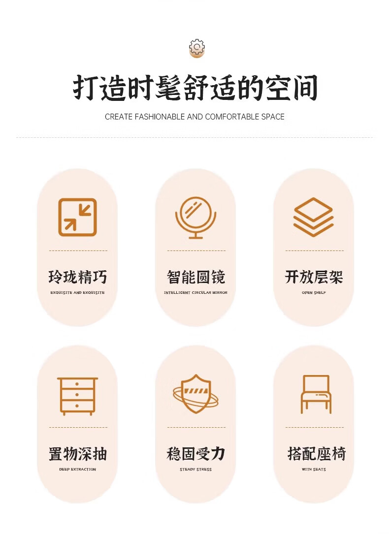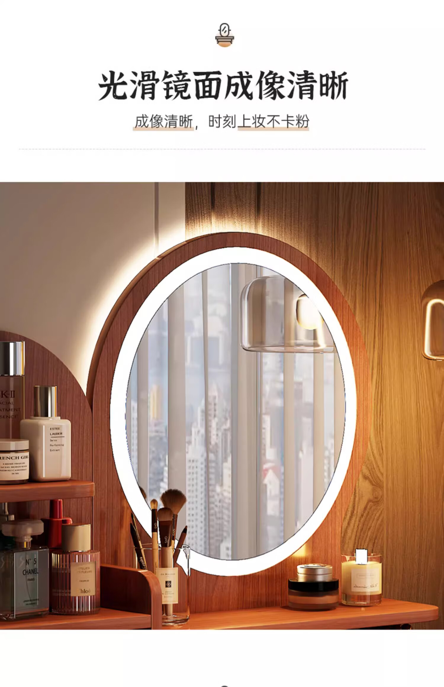 LOVEHOODCAT Dressing Table Bedroom Dressing Table and Cupboard Integrated 2025 New Storage Mirror Bedroom Light Luxury High-end Dressing Table Bonus ~ Free Dressing Stool | Ancient Sandalwood Color Four-drawn Round Mirror