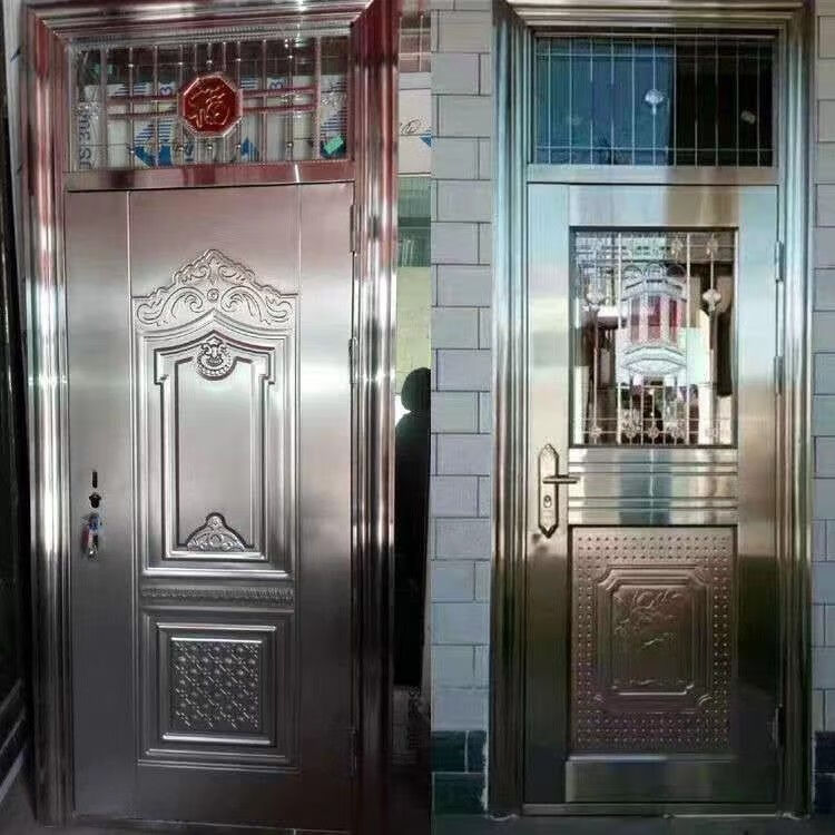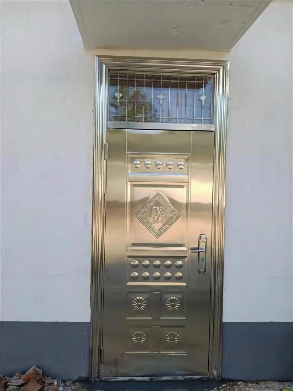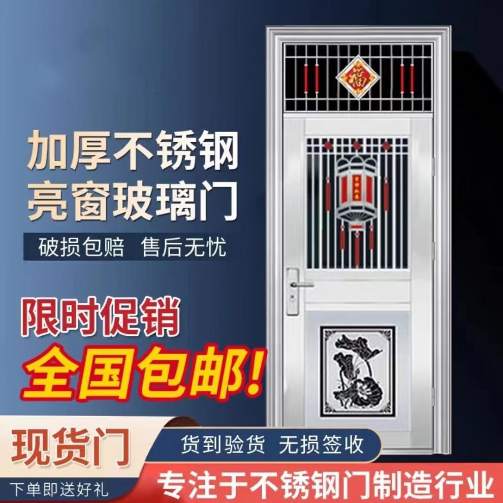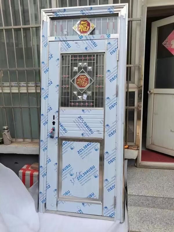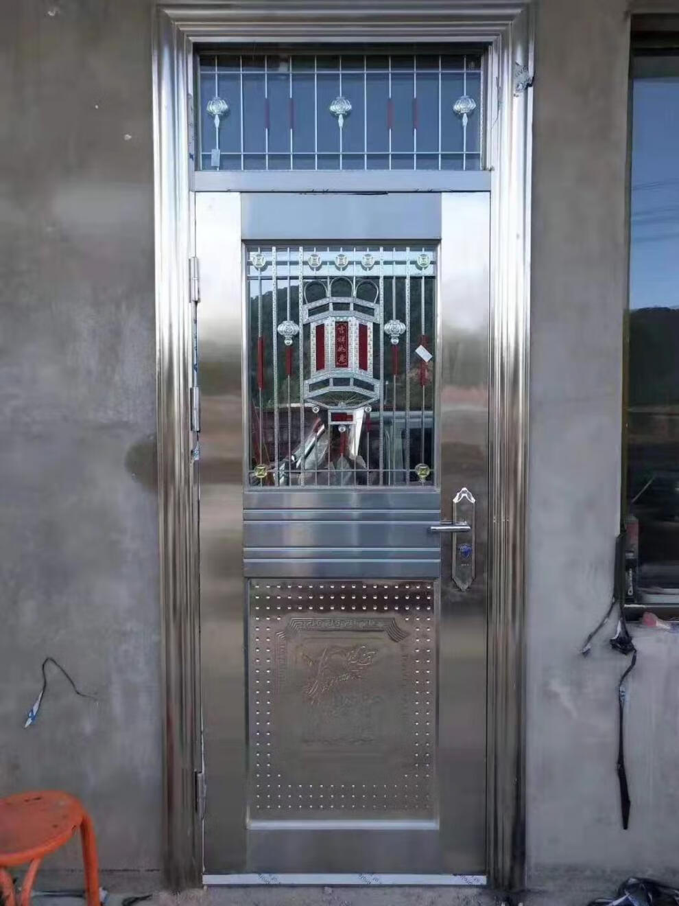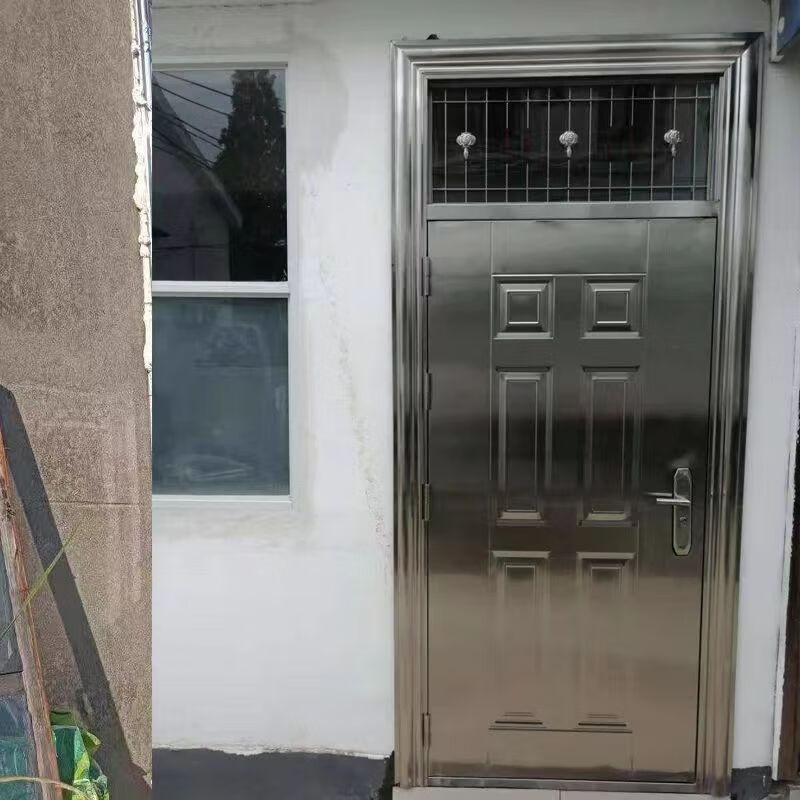Qinkai authentic stainless steel single door with bright window country glass balcony transom door stainless steel anti-theft door entry 860*2480 inner right/outer left