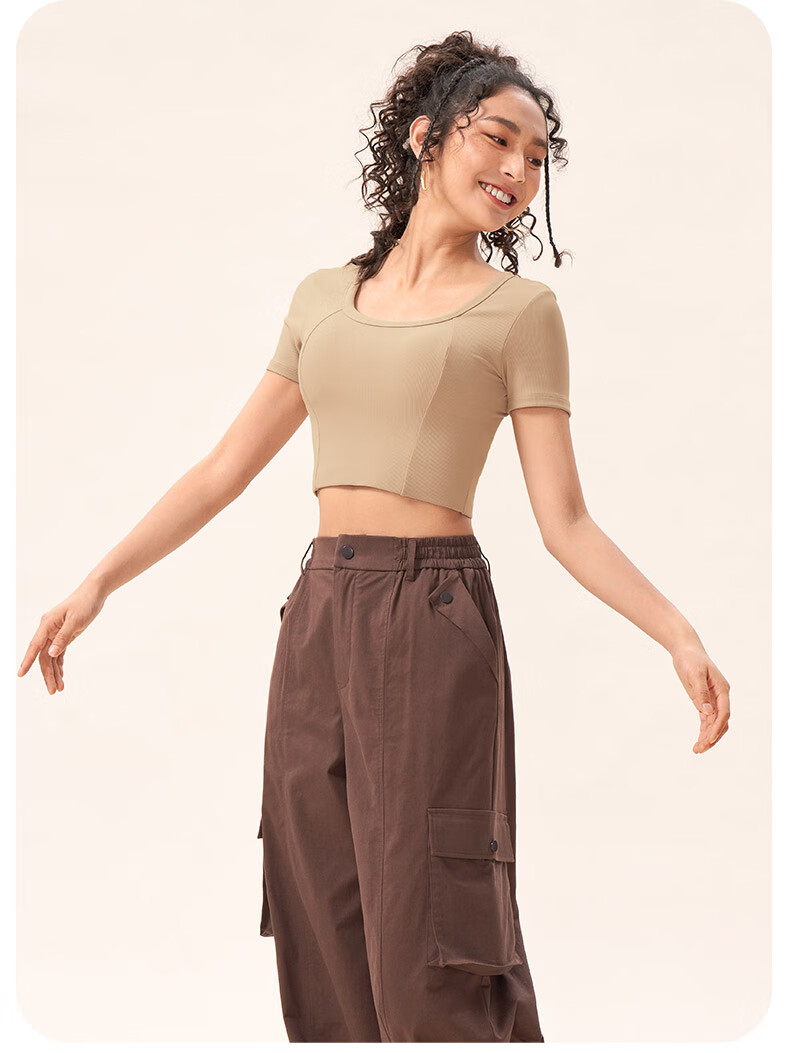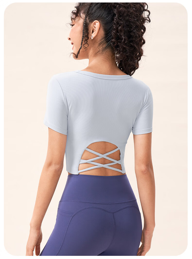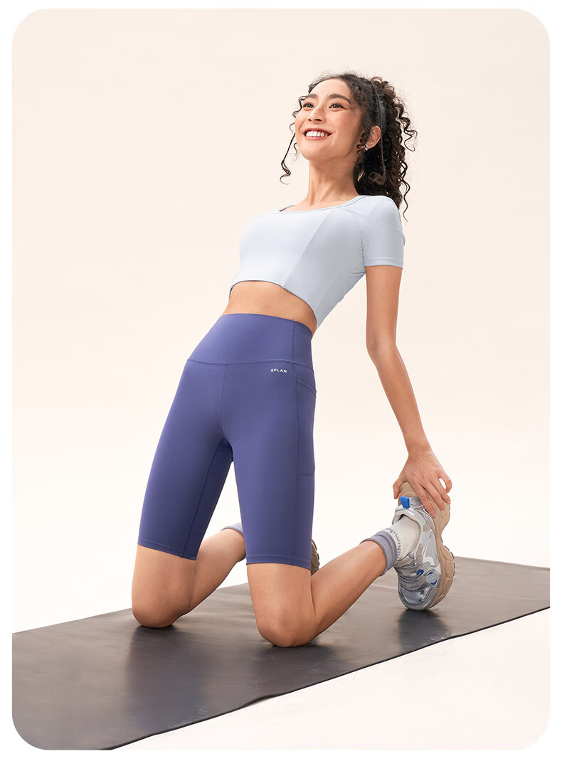 SPLAN wake-up plan short fitness clothes for women with chest pads, quick-drying yoga clothes, sports short-sleeved tops, Pilates all-in-one, Luo Ke Xing, bring your own cup, one piece to go out S
