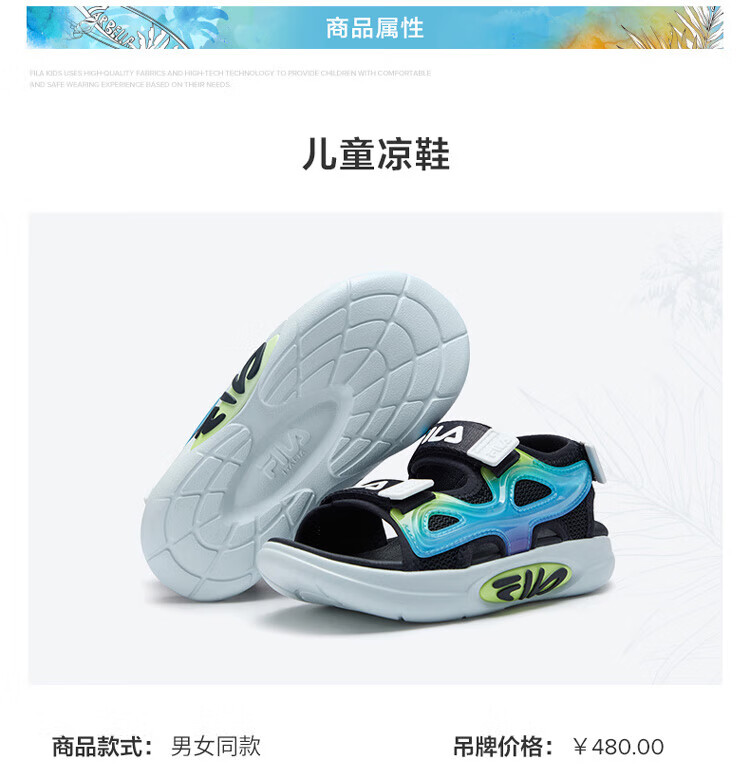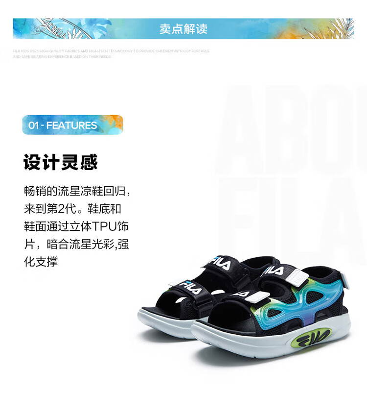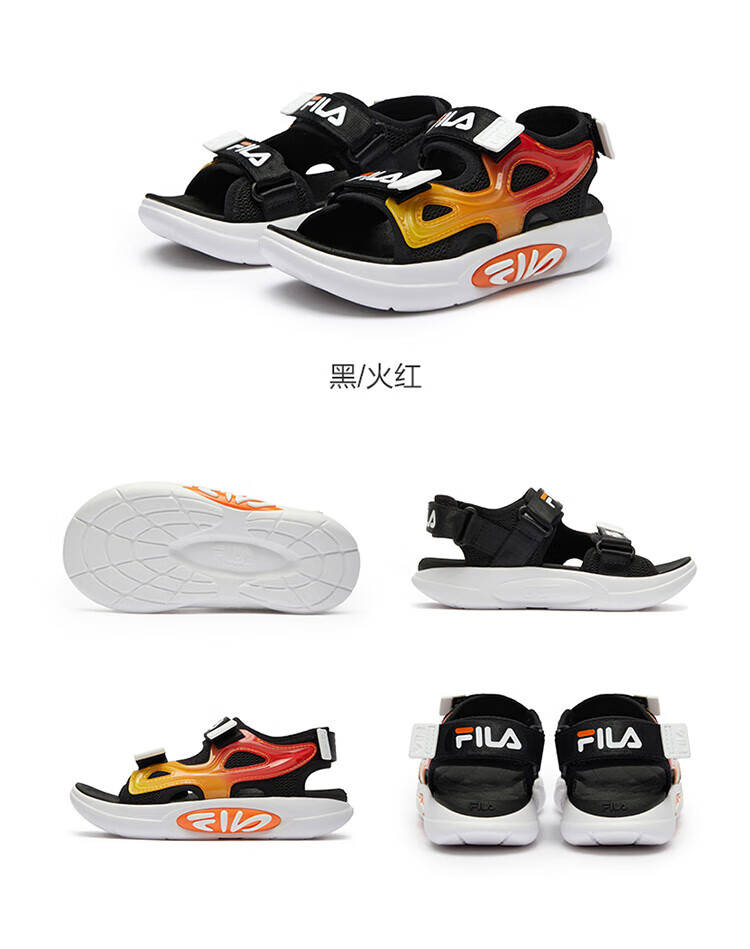 Fila Fila Children's Shoes 2024 Summer Summer Boys and Girls Children's Sandals Sandals Black/Fire Red-BF 26 Size Inner Length 16.0cm