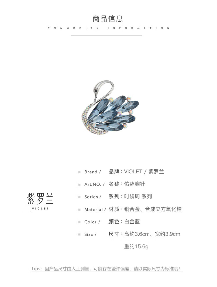 Violet Goose Brooch High-end Women's Exquisite Gift Butterfly Corsage 2024 New Fashion Pin Platinum Blue 1