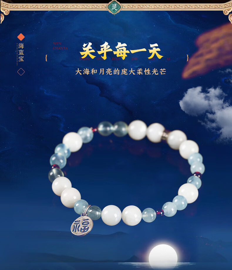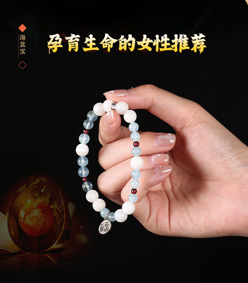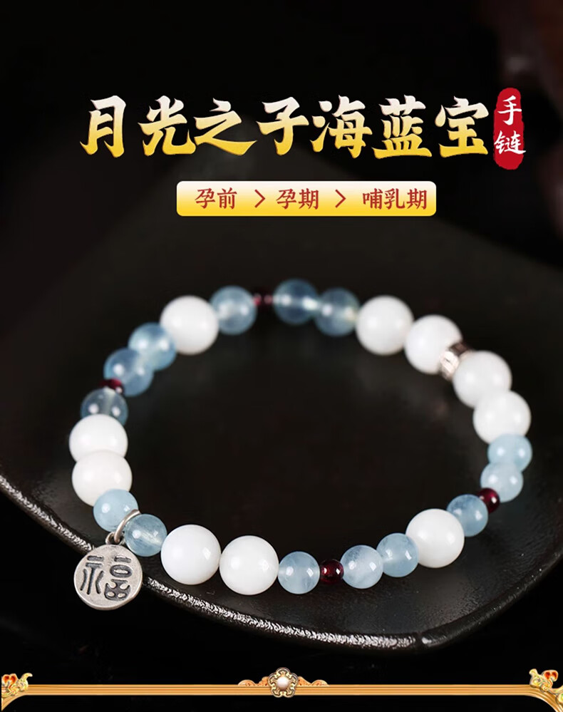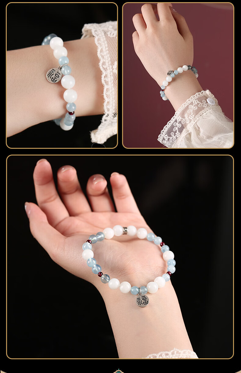 La Yun Feiyin Aquamarine Moonstone Bracelet Pregnant Women Garnet Gift for Wife Crystal Bracelet Aquamarine Moonstone Bracelet