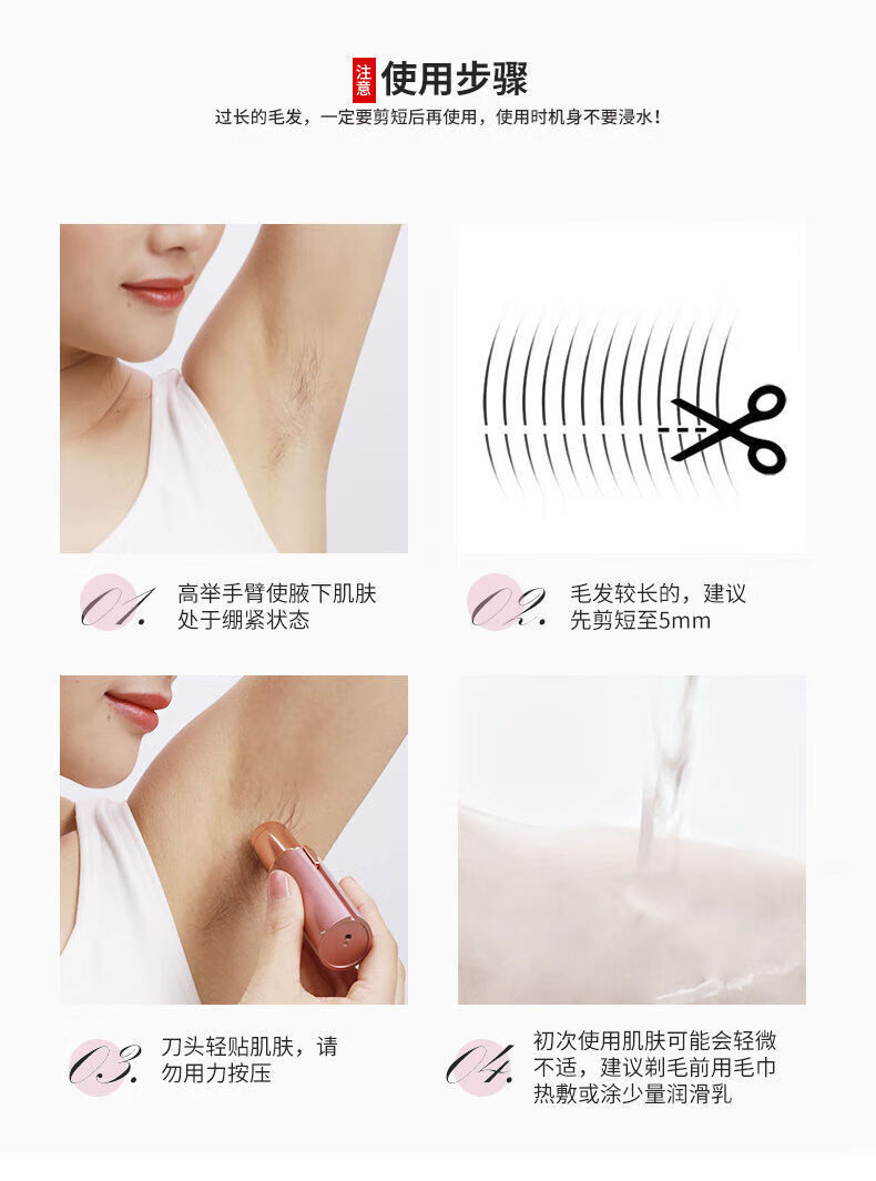 Xinai electric shaver, private part trimmer, armpit hair artifact, special shaver for men and women, hair removal device for armpit, ivory white/rechargeable top version (charging cable + eyebrow trimming scissors + aloe vera gel)