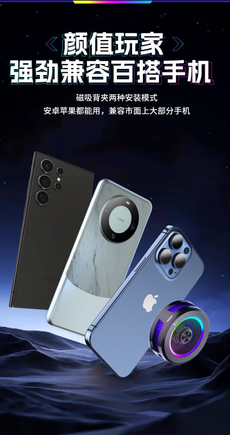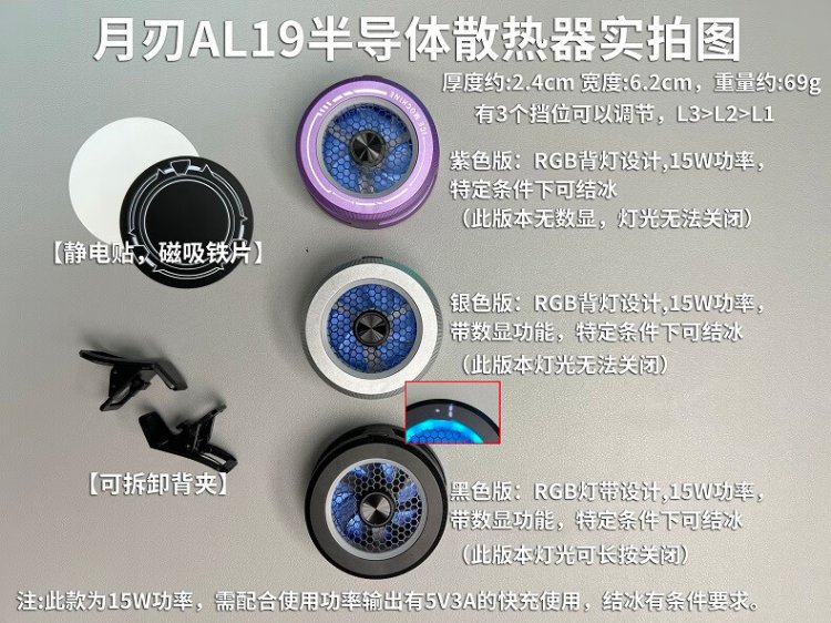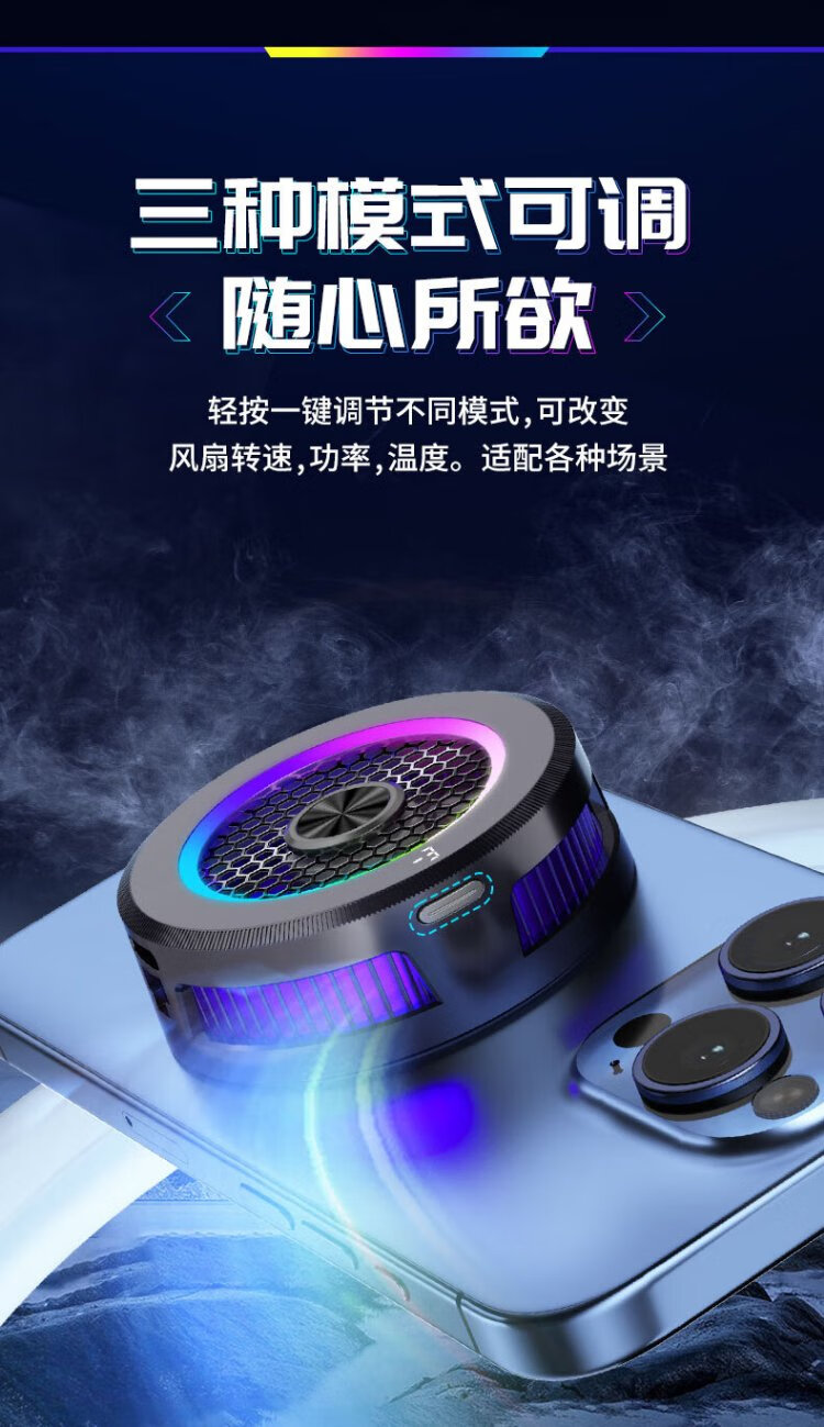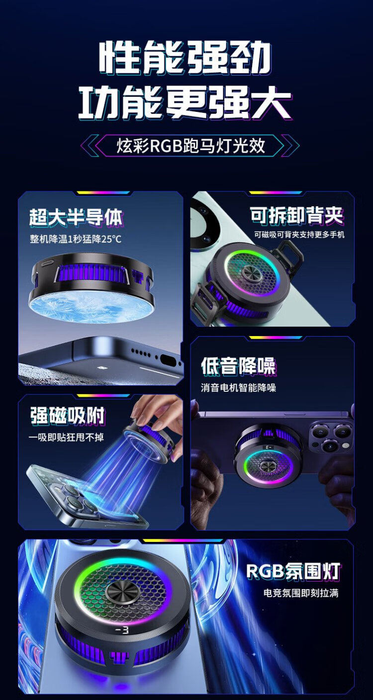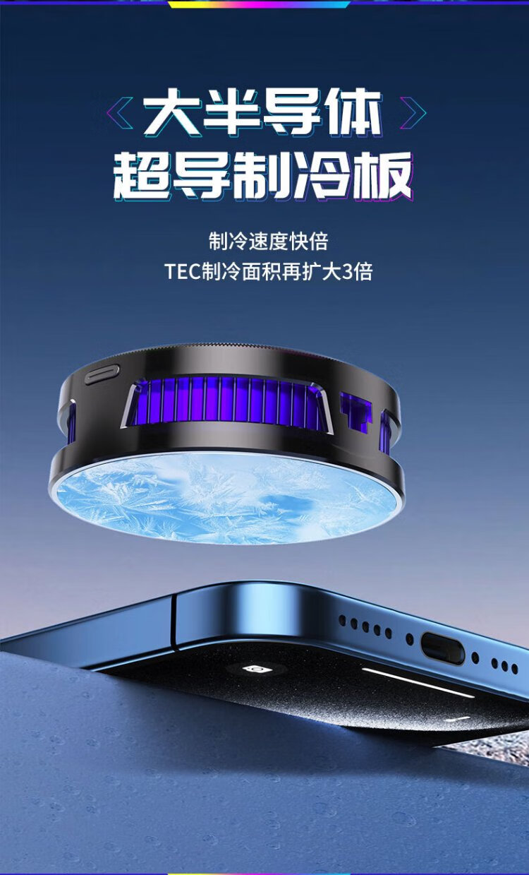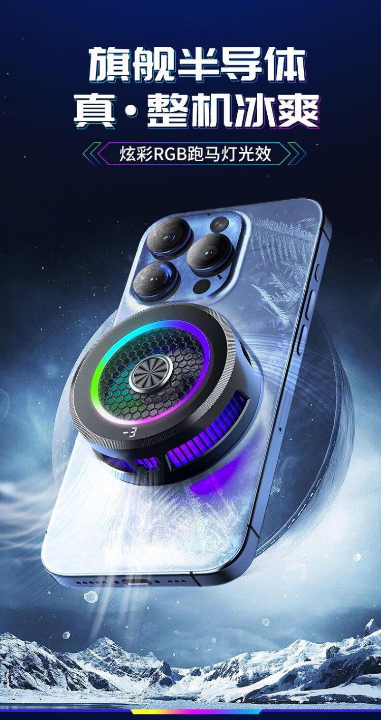 Moon Blade 2024 Real Freeze丨Cooling -3 degrees Mobile phone semiconductor radiator RGB lighting effect Game live broadcast cooling cooling artifact Magnetic back clip design three-speed adjustment Magnetic ice seal丨RGB lighting effect