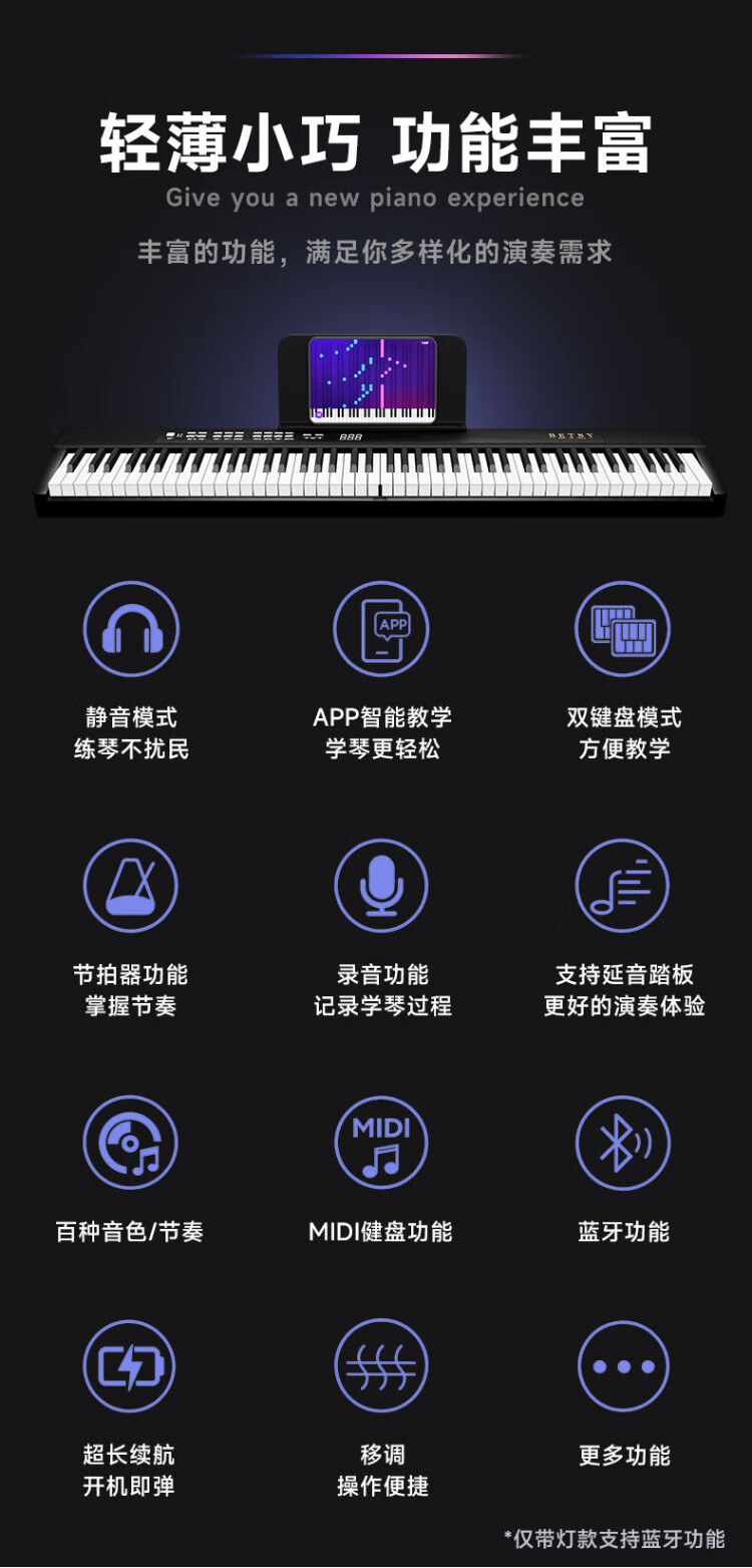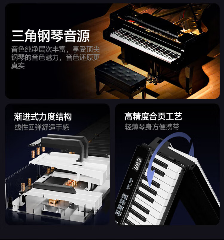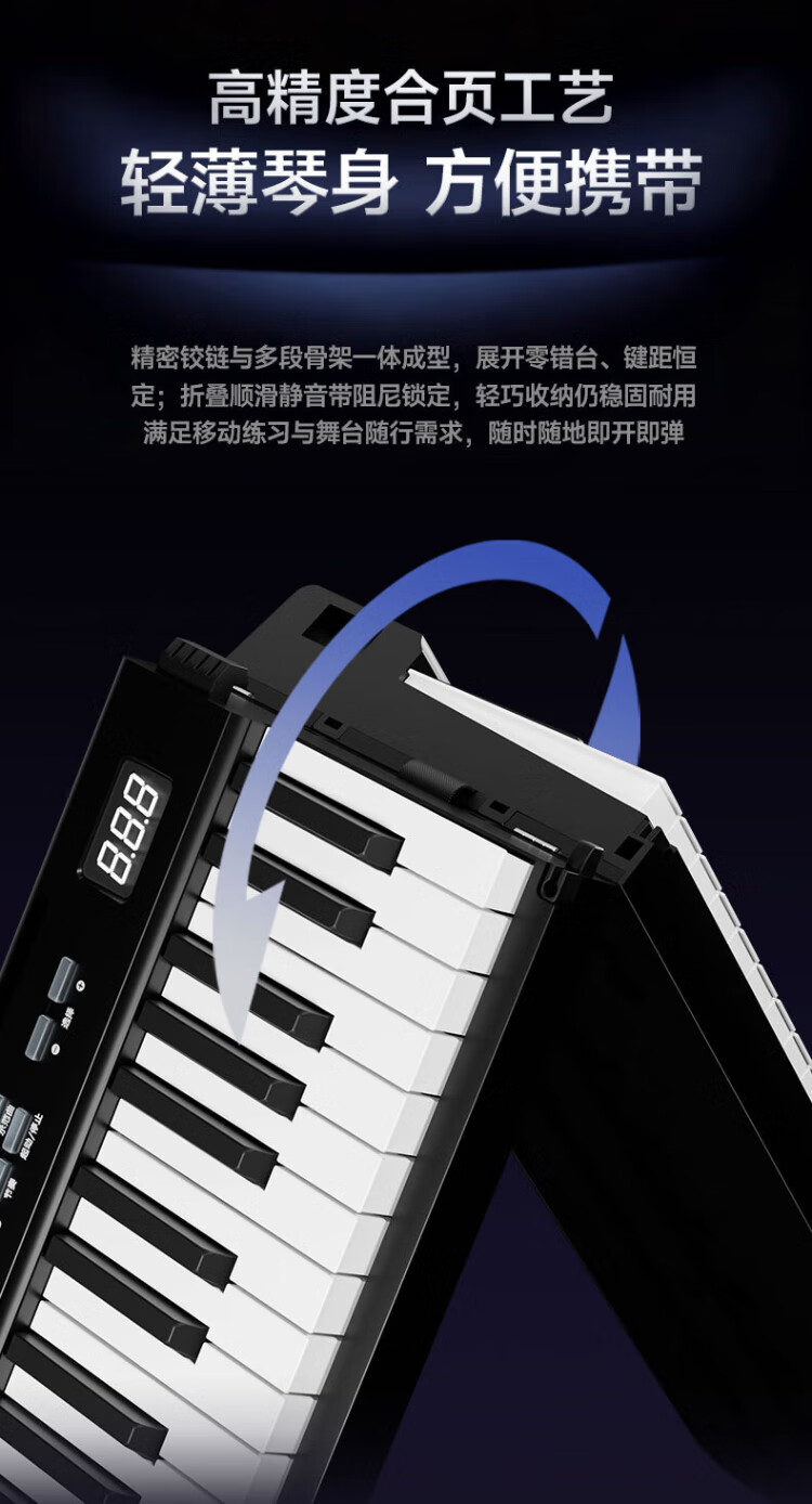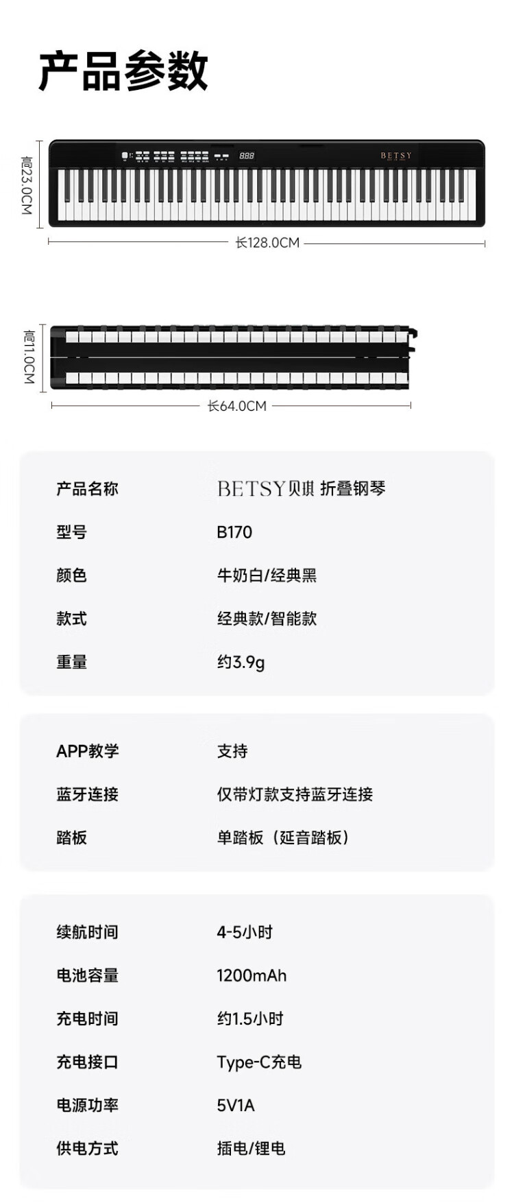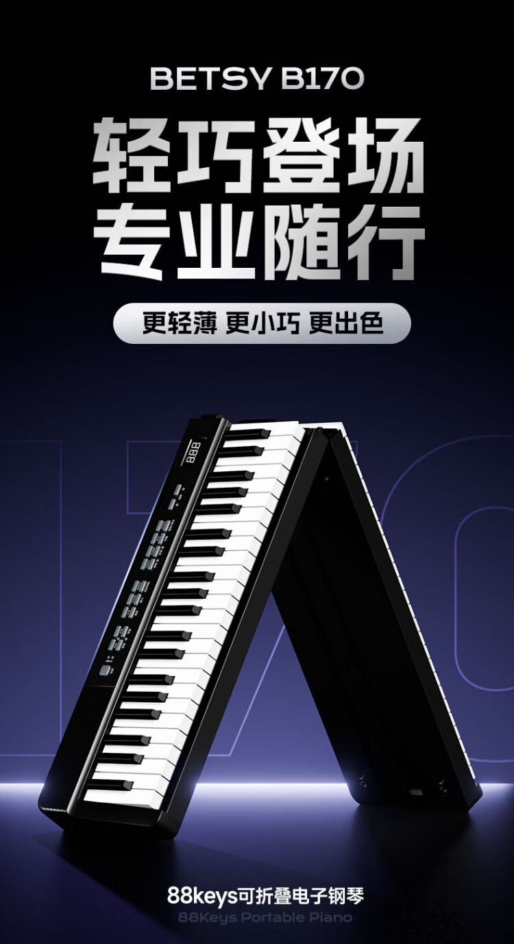 Betsy B170 Electronic Piano 88 Keys Adult Beginner Dormitory Portable Folding Electric Piano Beginner's Entry Electronic Piano B170 Folding Design 88 Keys Classic - Black Package 2 Standard + Thickened Piano Bag