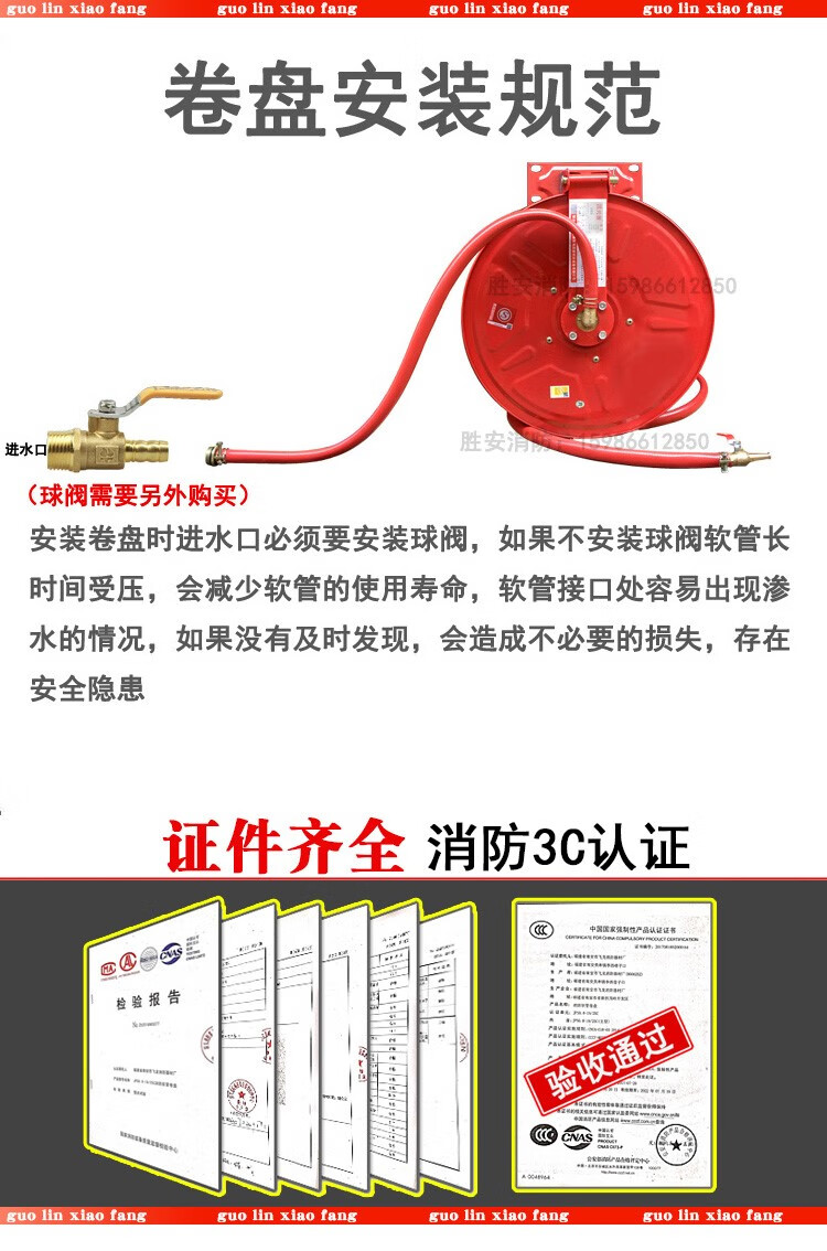 Hose reel water pipe equipment self-rescue hose turntable reel box 20 meters 25 meters 30 meters pipe reel black pipe 25 meters weighs 8 kilograms