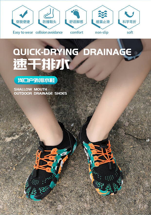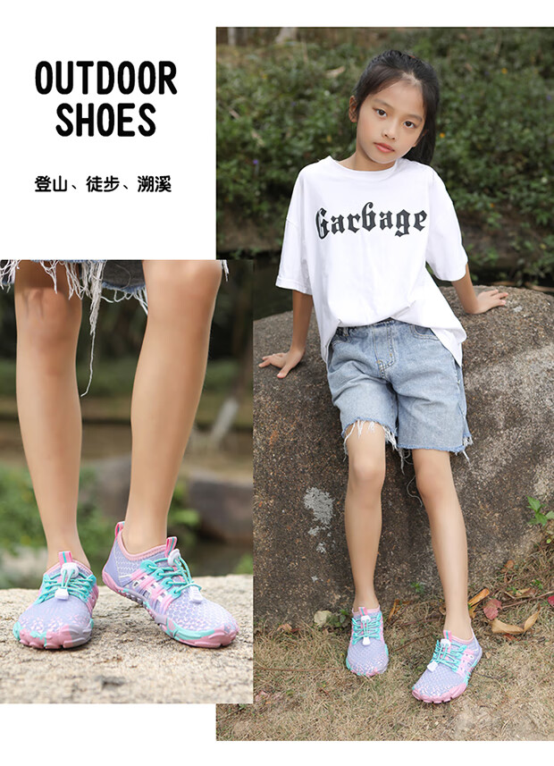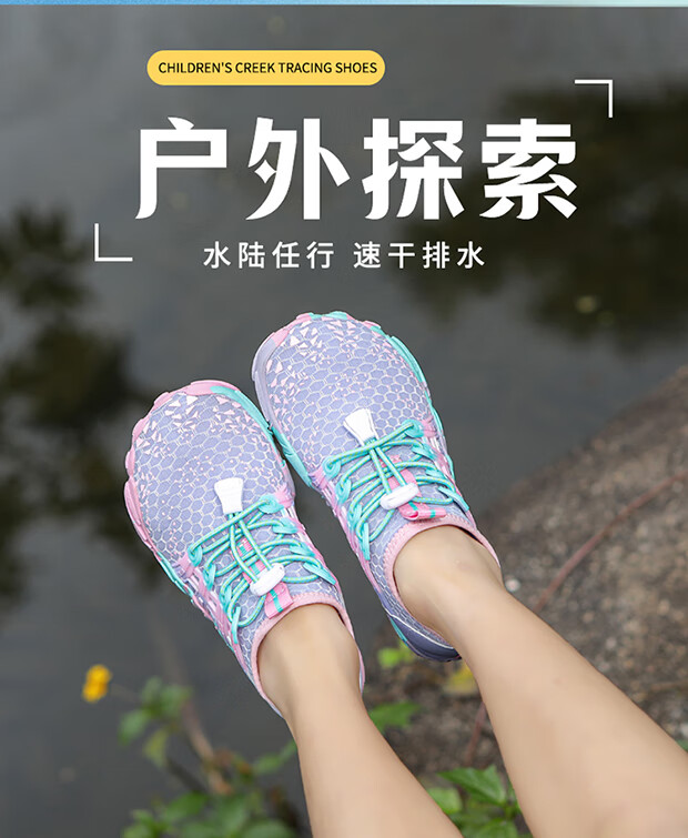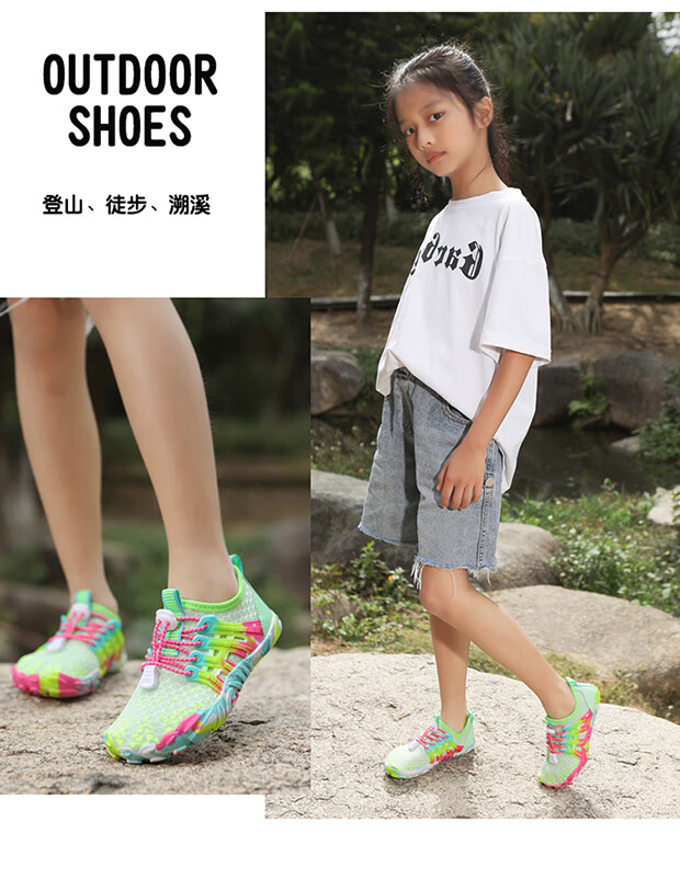 Tibetan beauty era parent-child shoes, outdoor river tracing shoes for boys and girls, hiking and beach shoes, children's hiking wading shoes, amphibious shoes, 2388 fluorescent green, parent-child style, size 33/inner length 21cm
