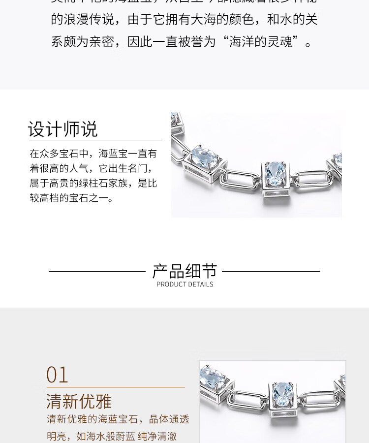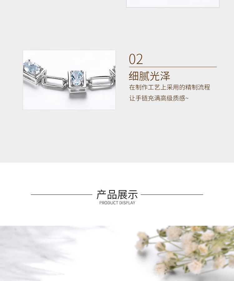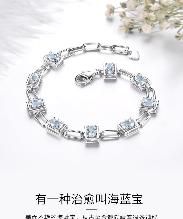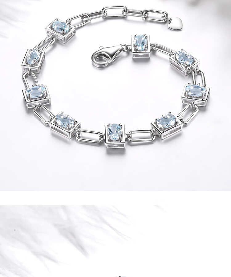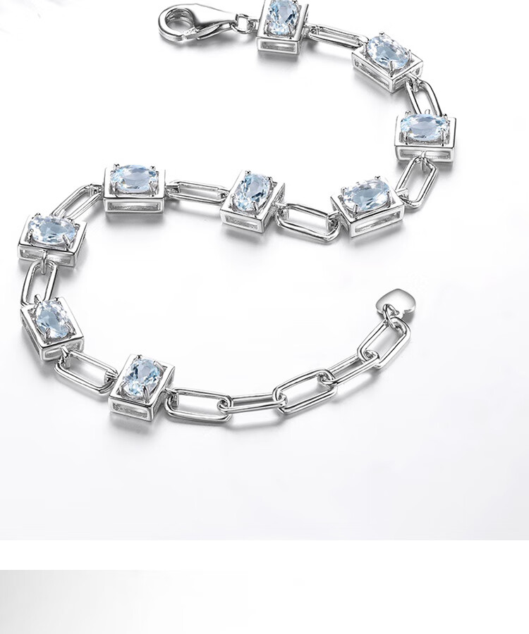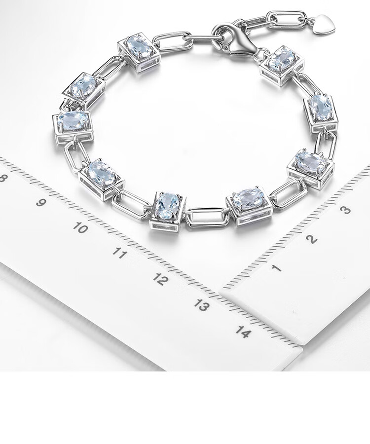 CAJJ Francois 3.70 carat aquamarine bracelet for women, natural colored gemstones, 925 silver inlaid jewelry, aquamarine bracelet