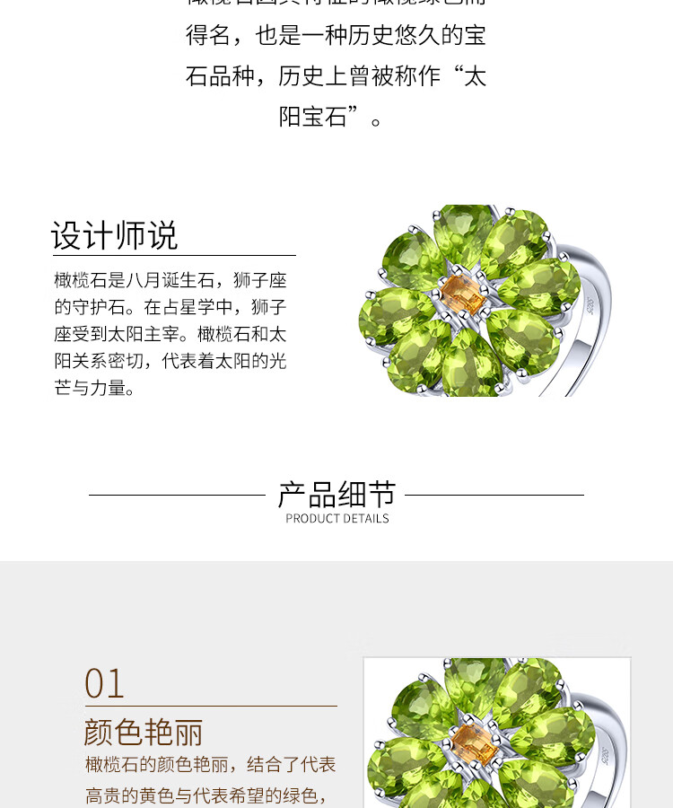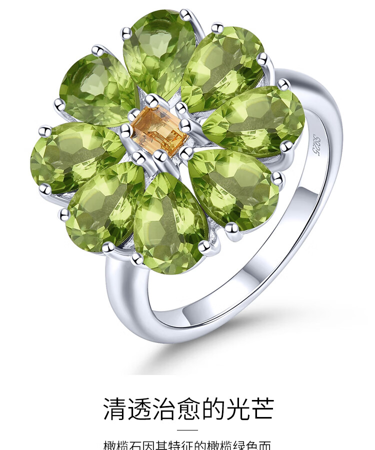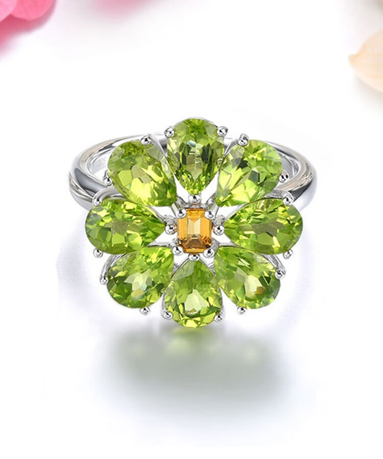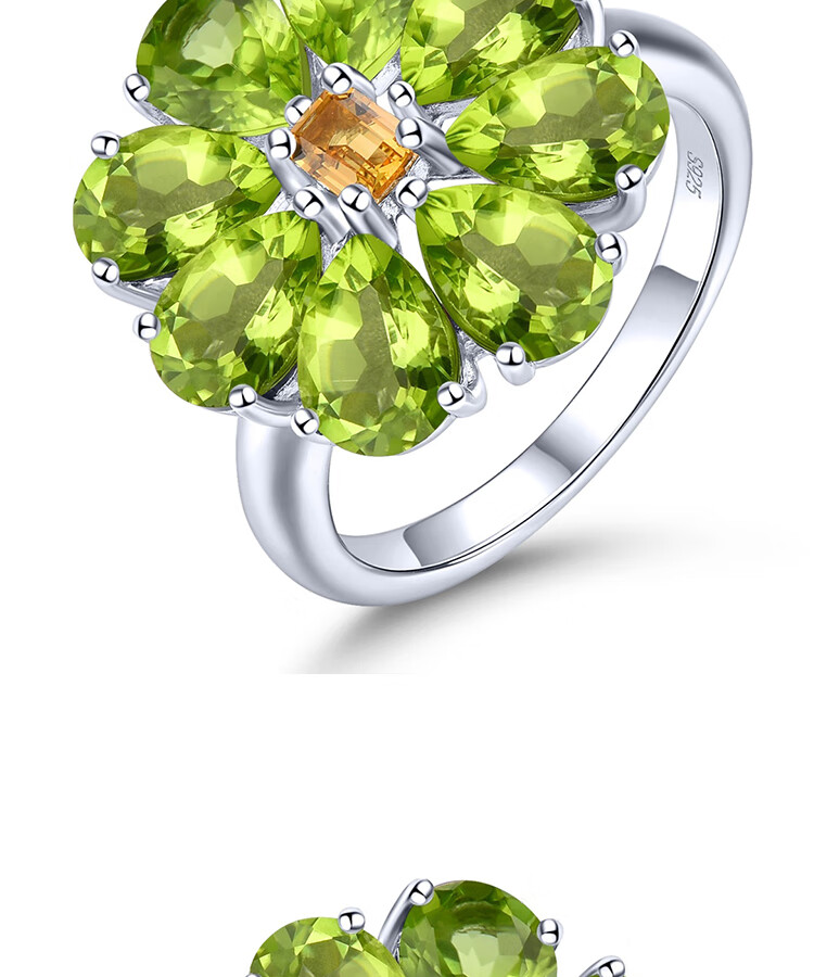 CAJJ Francois 6.90 carat peridot ring for women, natural colored gemstone, 925 silver inlaid jewelry, No. 13