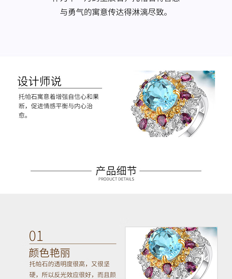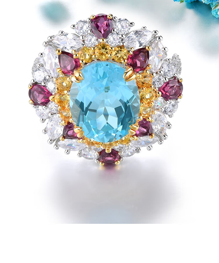 CAJJ Francois 5.70 carat topaz ring for women, natural colored gemstone, 925 silver inlaid jewelry, No. 13