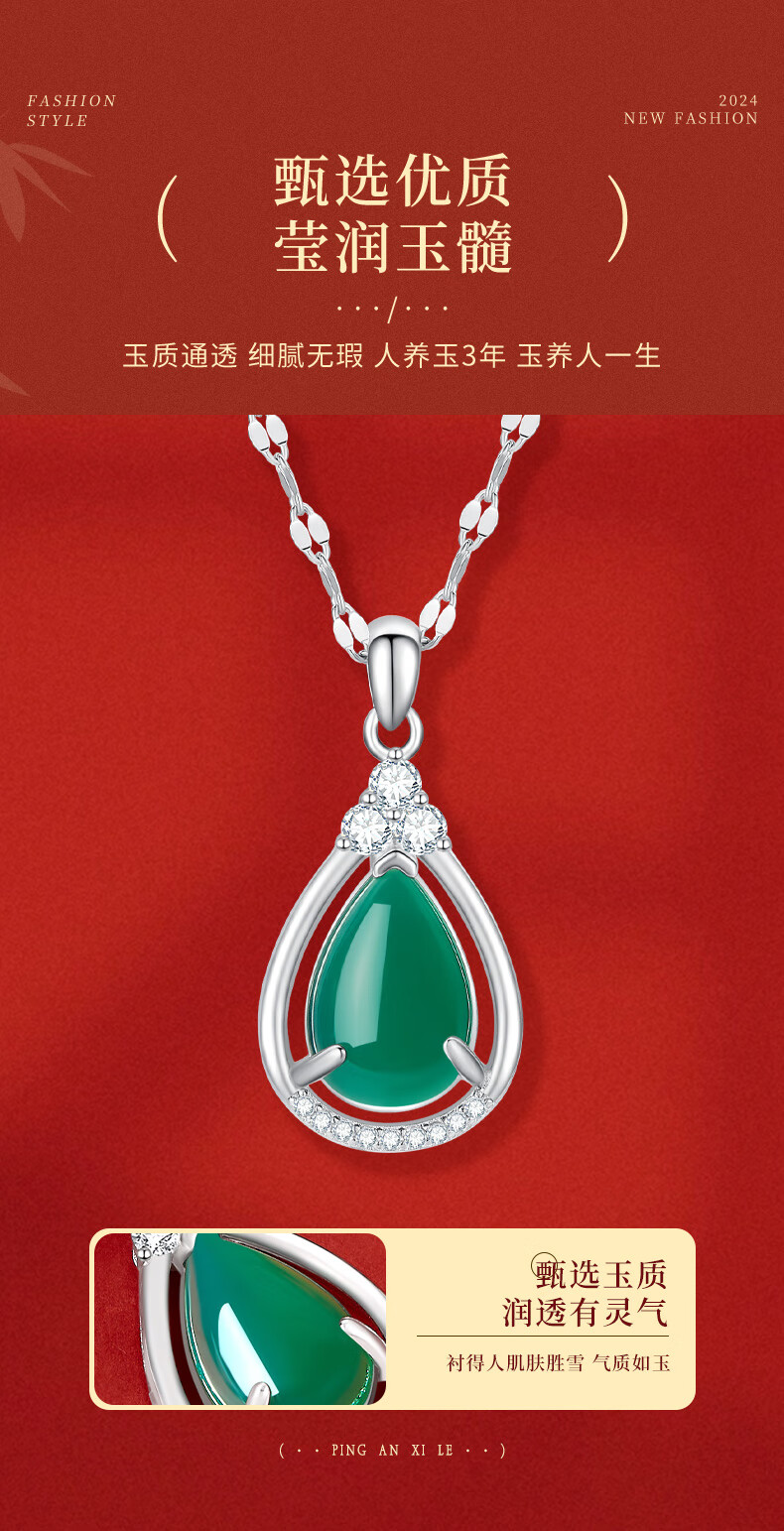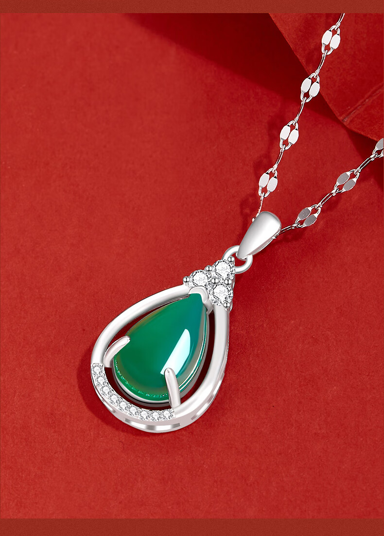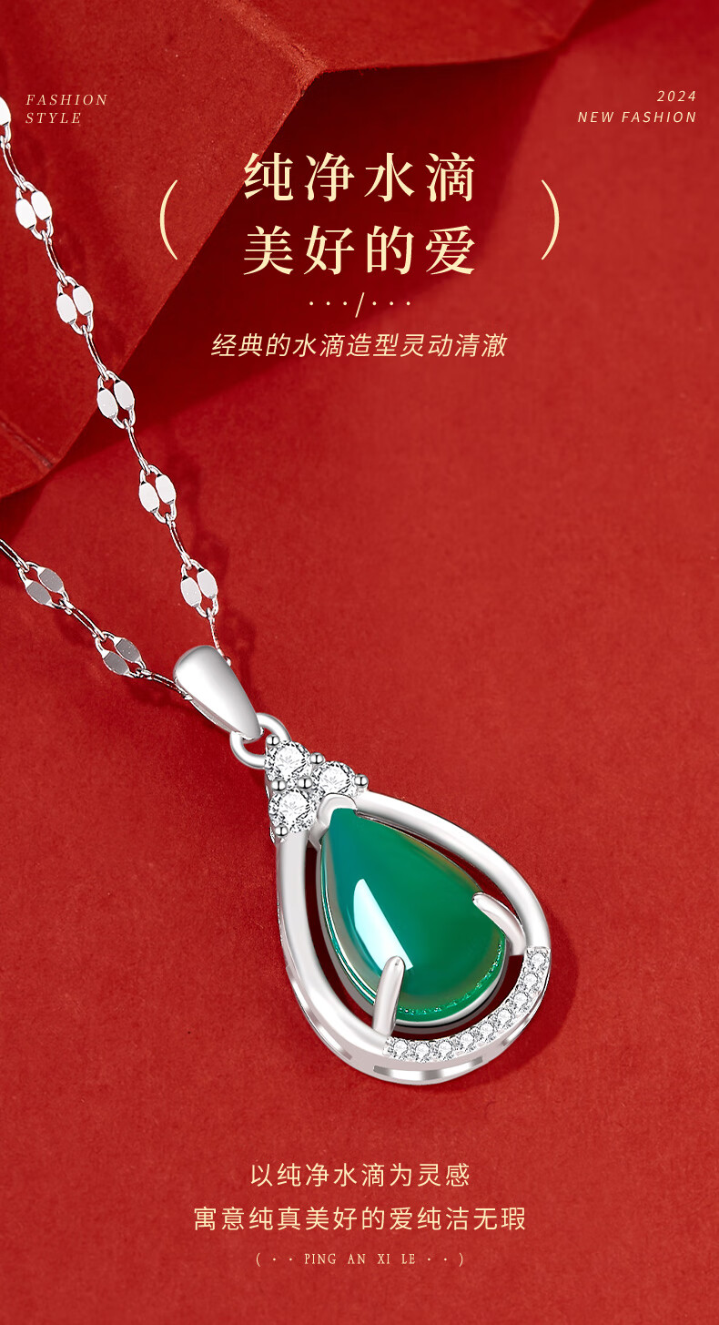 China Gold (CHINA GOLD) 925 Silver Chrysoprase Water Drop Necklace Women's Light Luxury High-Quality Sterling Silver Pendant Valentine's Day Practical Birthday Gift Chrysoprase Water Drop Necklace Brand Gift Box