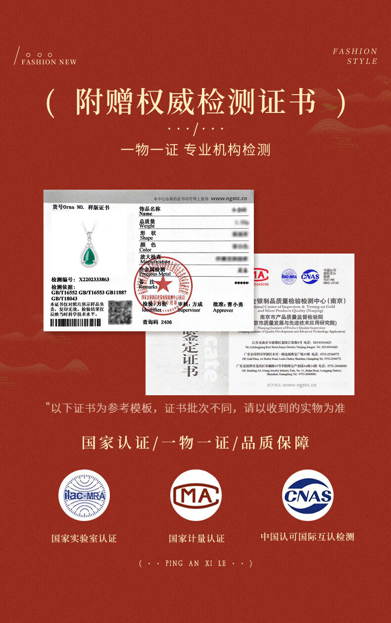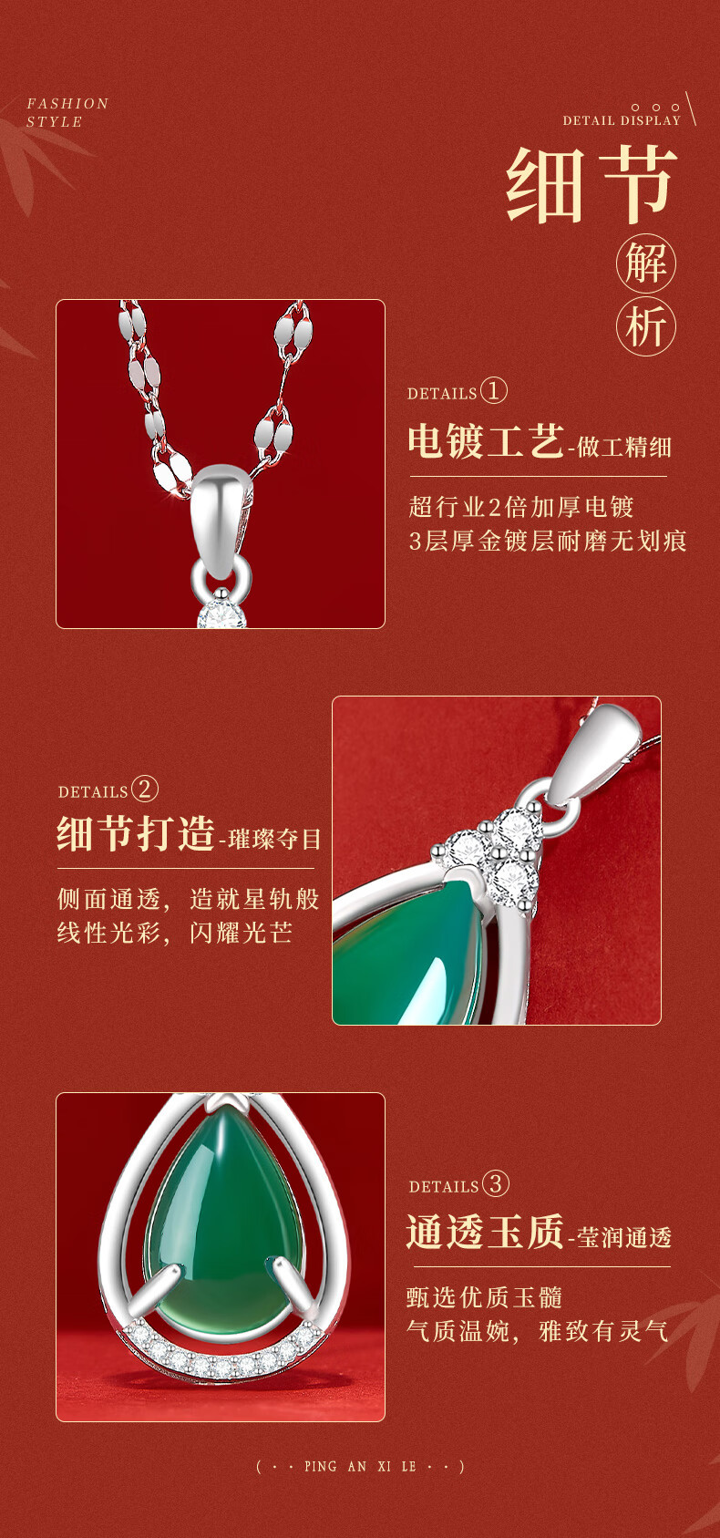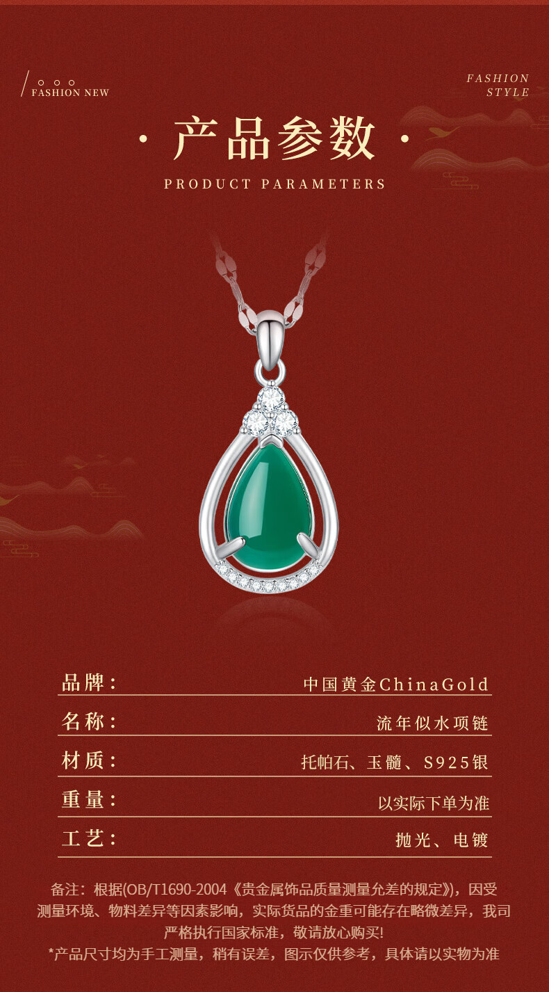 China Gold (CHINA GOLD) 925 Silver Chrysoprase Water Drop Necklace Women's Light Luxury High-Quality Sterling Silver Pendant Valentine's Day Practical Birthday Gift Chrysoprase Water Drop Necklace Brand Gift Box