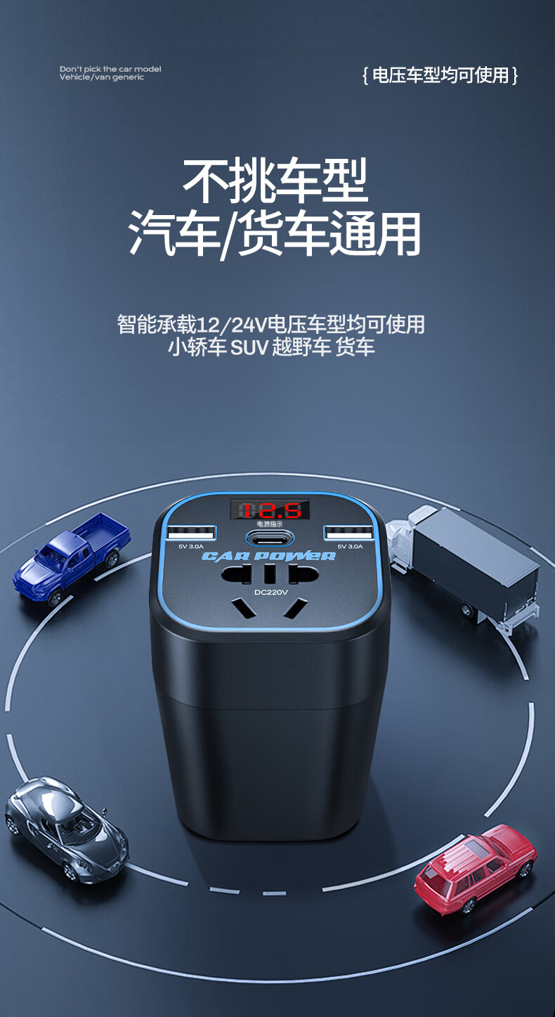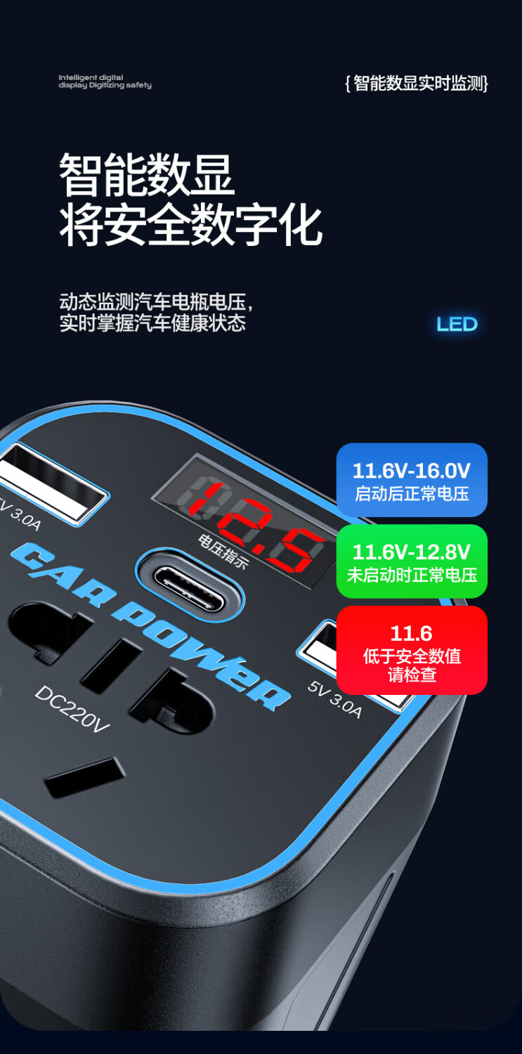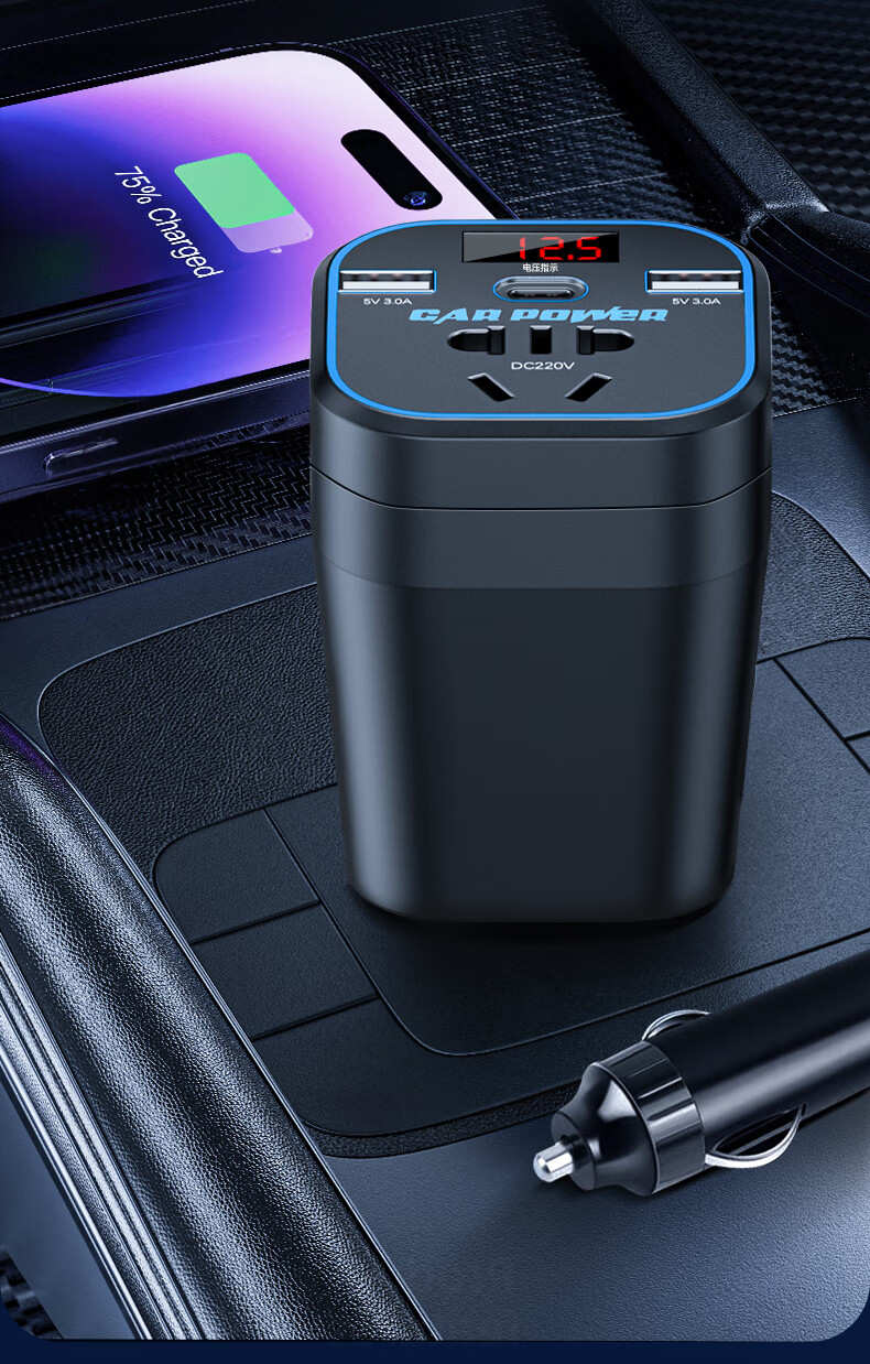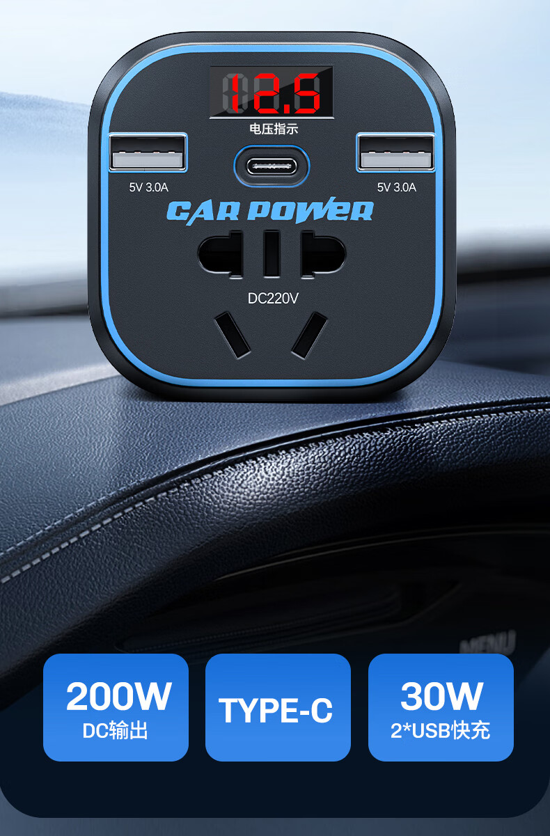 Mengxuan car inverter 12V24V to 220V car charger power converter cigarette lighter fast charging plug socket digital display fast charging car dedicated 12V to 220V 200W high power multi-functional car transformer plug strip
