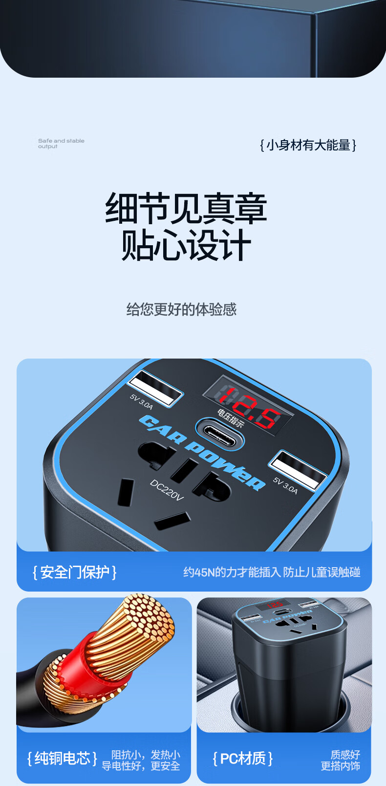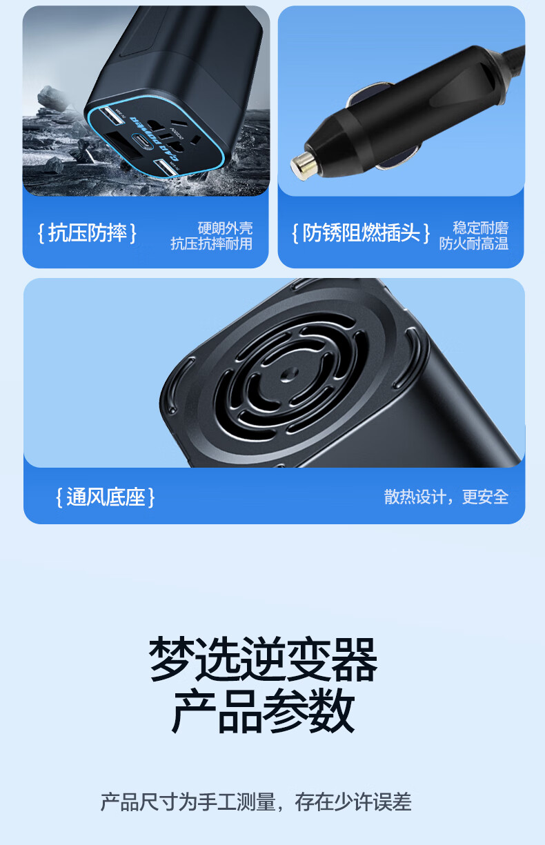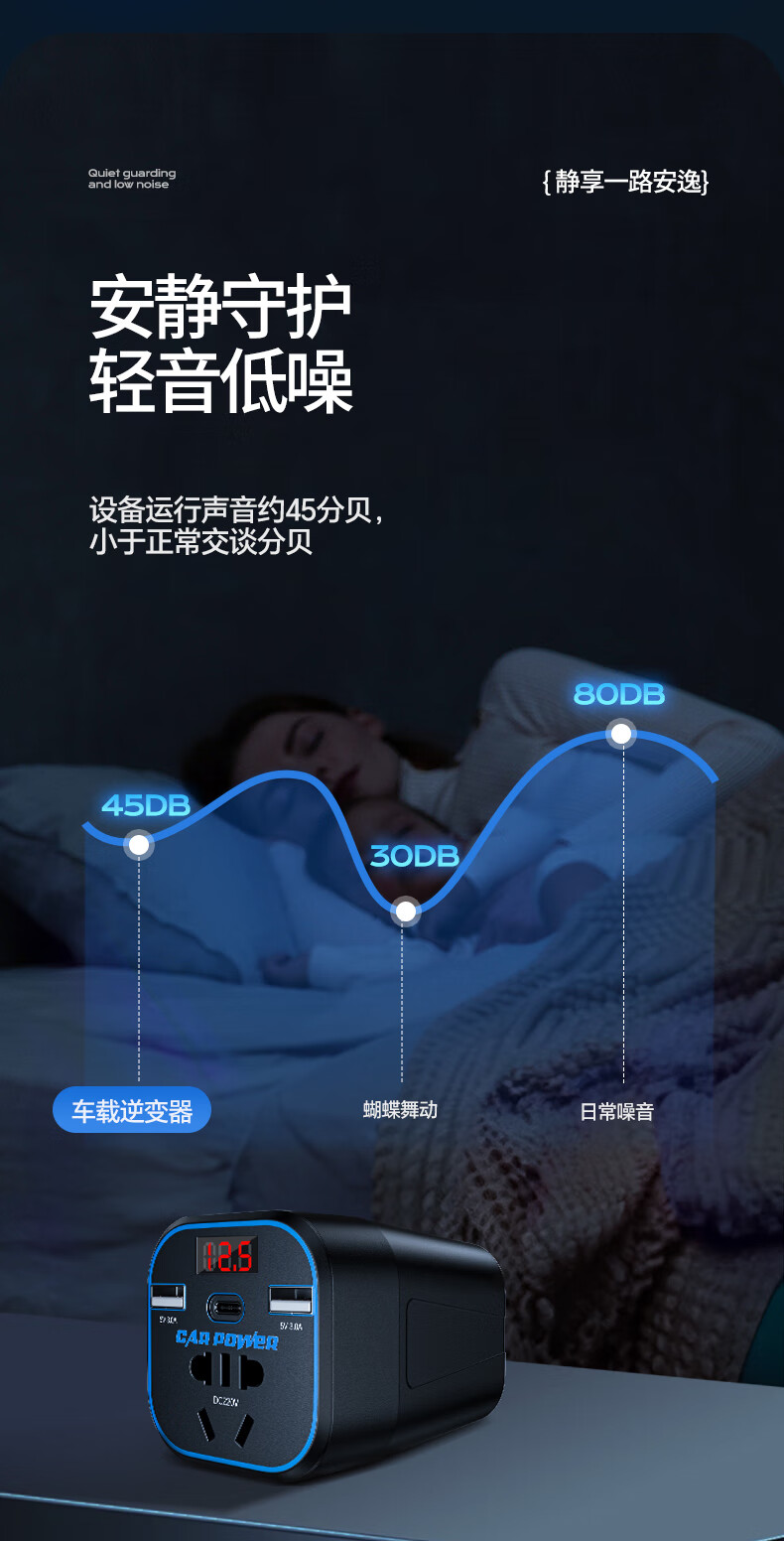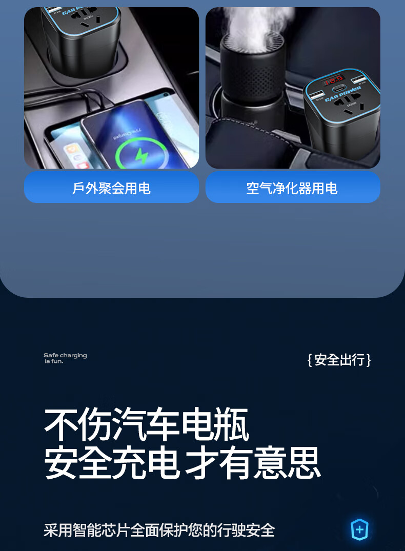 Mengxuan car inverter 12V24V to 220V car charger power converter cigarette lighter fast charging plug socket digital display fast charging car dedicated 12V to 220V 200W high power multi-functional car transformer plug strip