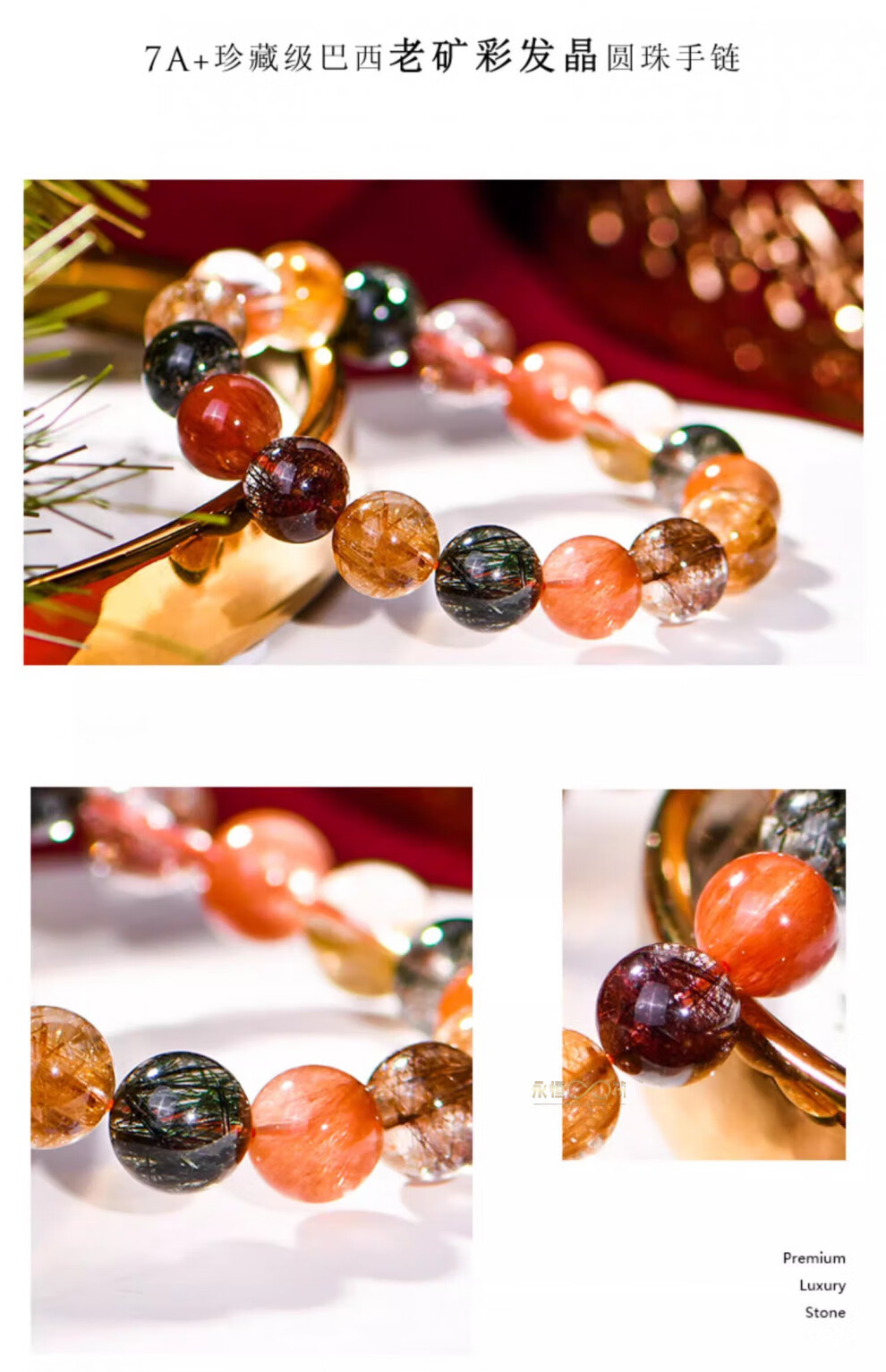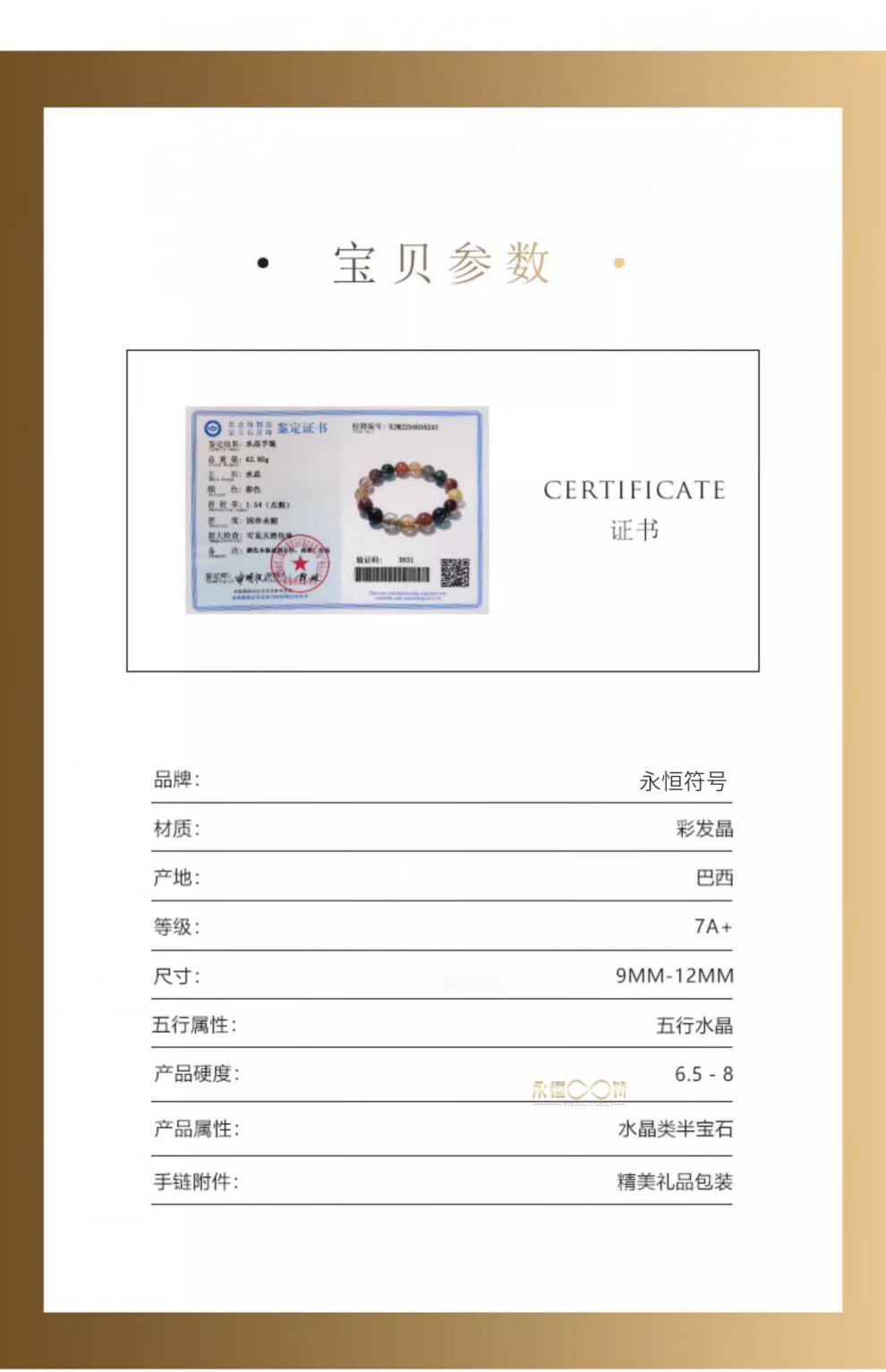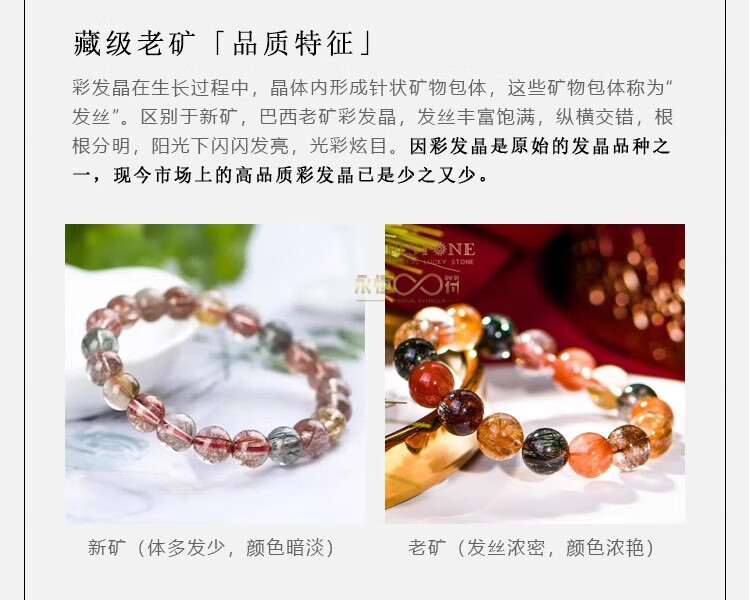 Eternal symbol collection grade Brazilian old mine color hair crystal bracelet 7A crystal bracelet Valentine's Day birthday gift high-end collection grade color hair crystal 11mm + national inspection certificate