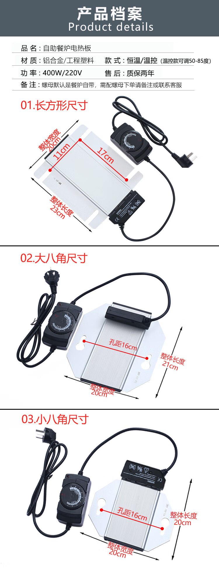 BONETHIRST Buffet Insulation Stove Electric Heating Plate Square Temperature Control Insulating Pot Buffy Stove Heating Plate Accessories Heating Plate Adjustable Temperature Small Octagonal Temperature Control Electric Heating Plate