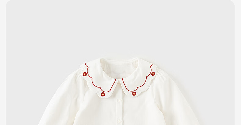 DAVE&BELLA children's long-sleeved shirt cotton girls' top spring new baby shirt children's clothing toddler bottoming shirt white ready in stock 100 cm (recommended height 90-100cm)